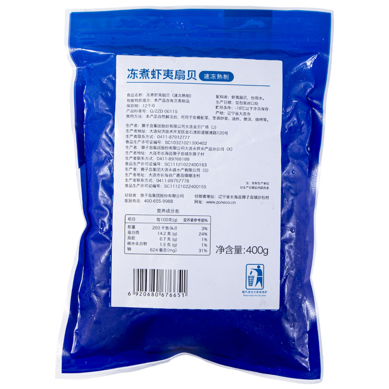 獐子岛冻煮虾夷扇贝400g大连特产海鲜烧烤海鲜虾夷扇贝