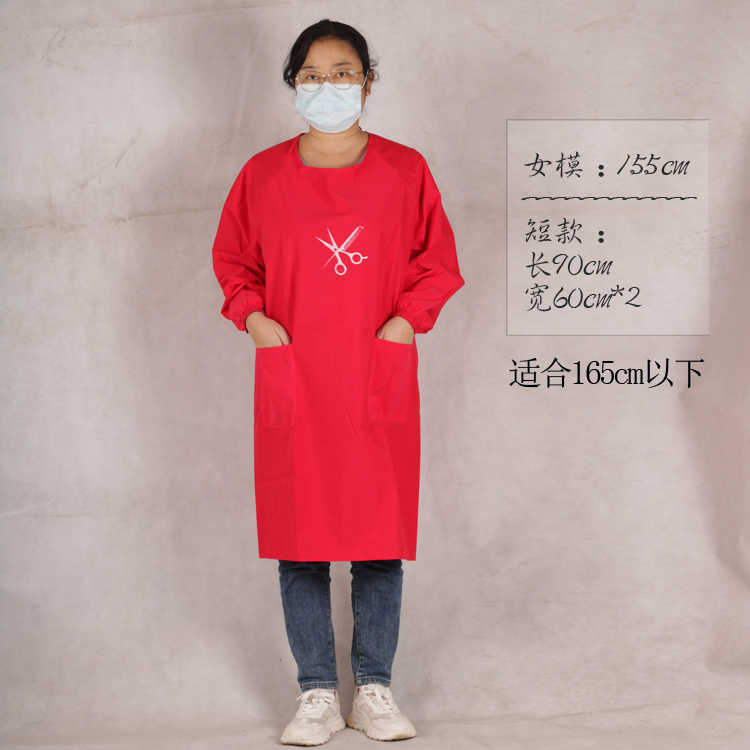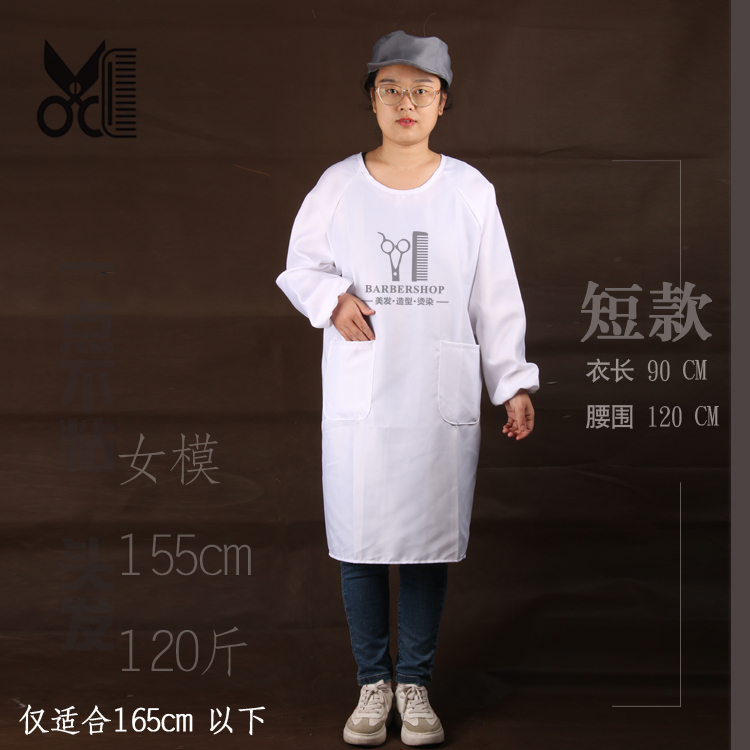 理发店围裙美发师烫染发廊罩衣中工服助理小工作服防水防静电长款