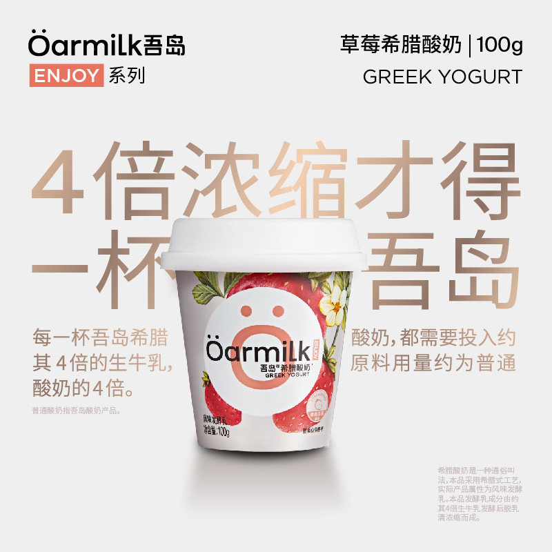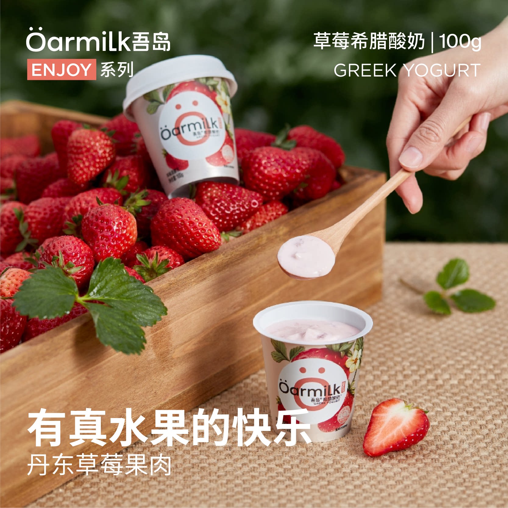 Oarmilk吾岛希腊酸奶草莓酸奶100g装风味希腊酸牛奶益生菌发酵乳