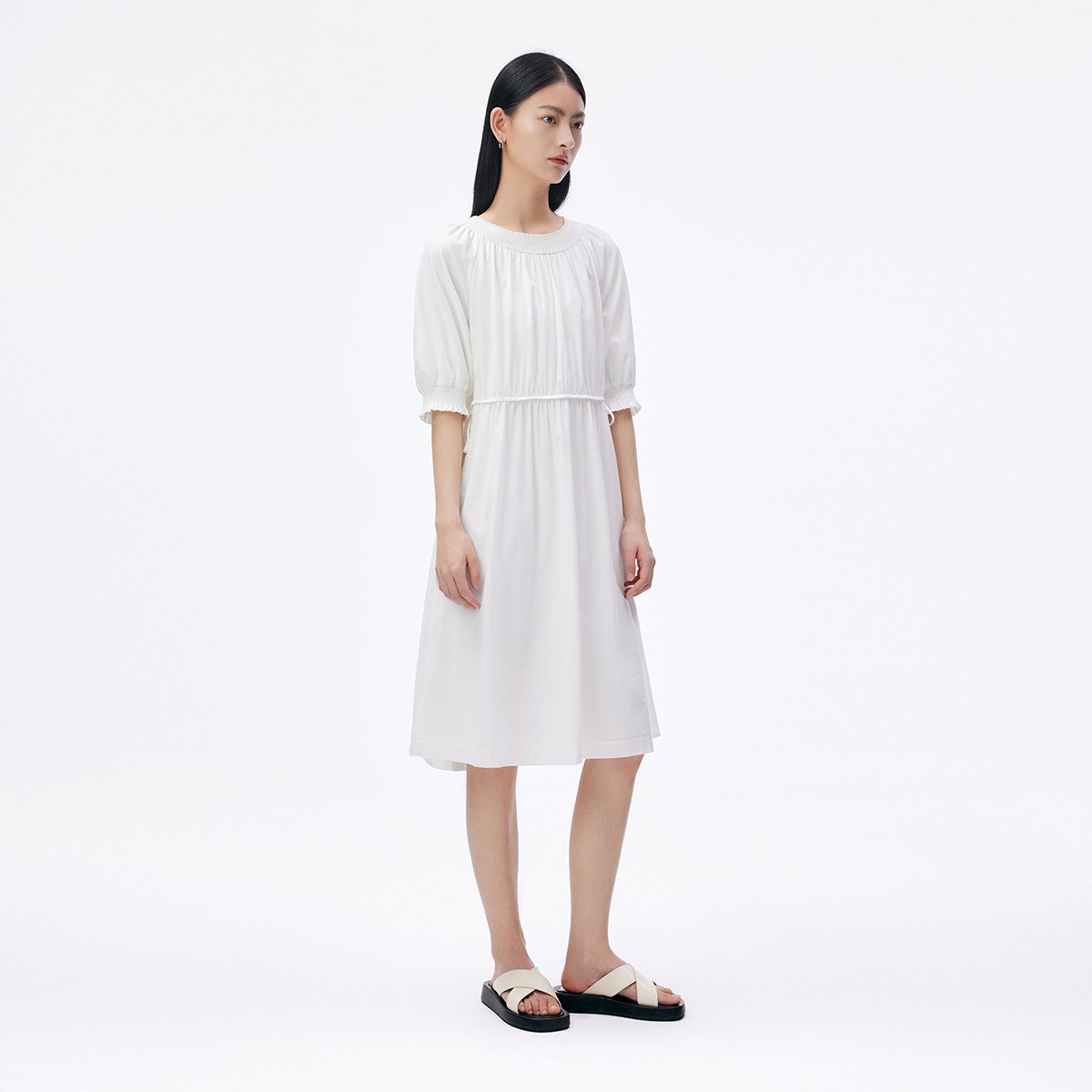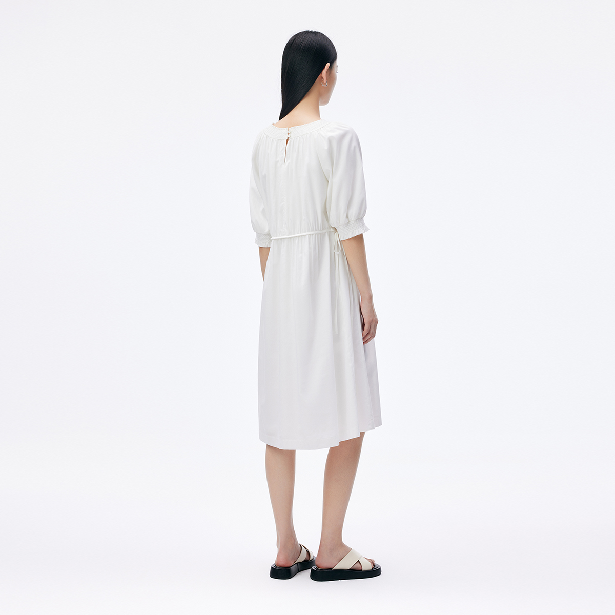 播2023夏新款文艺休闲腰带装饰修身中长款短袖连衣裙女DDQ3LD5005