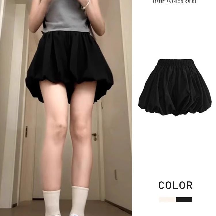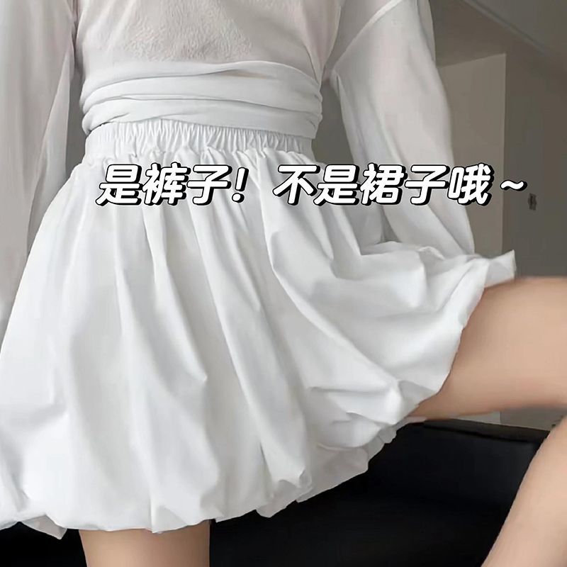 白色半身裙女夏季2025新款高腰a字花苞短裙垂坠感百褶短裤蓬蓬裙