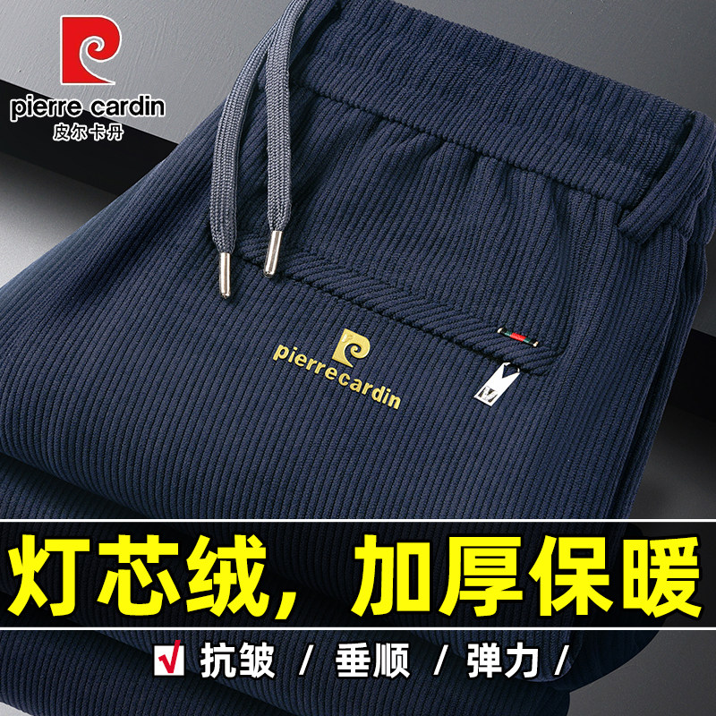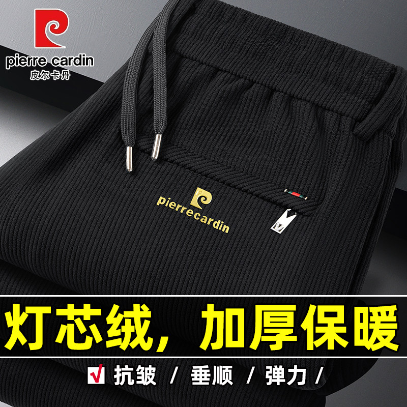 皮尔卡丹灯芯绒裤子冬季加绒加厚松紧卫裤保暖宽松运动裤休闲裤男