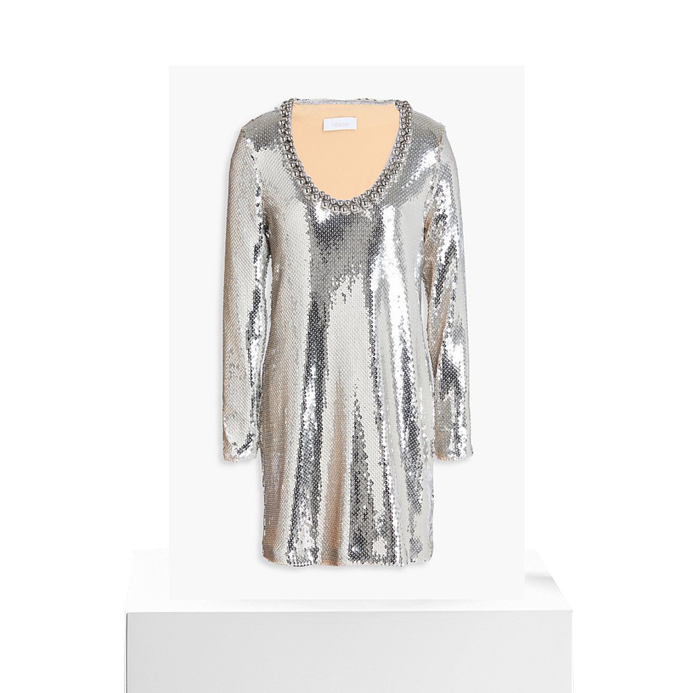 1h可退 香港直邮Rabanne 女士 珠片铜氨纤维混纺针织迷你连衣裙 2