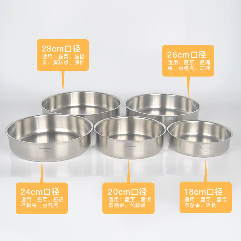 18/10不锈钢菜盘蒸糕盘凉皮锣锣加厚平底盘碟子水果盘18-28cm包邮