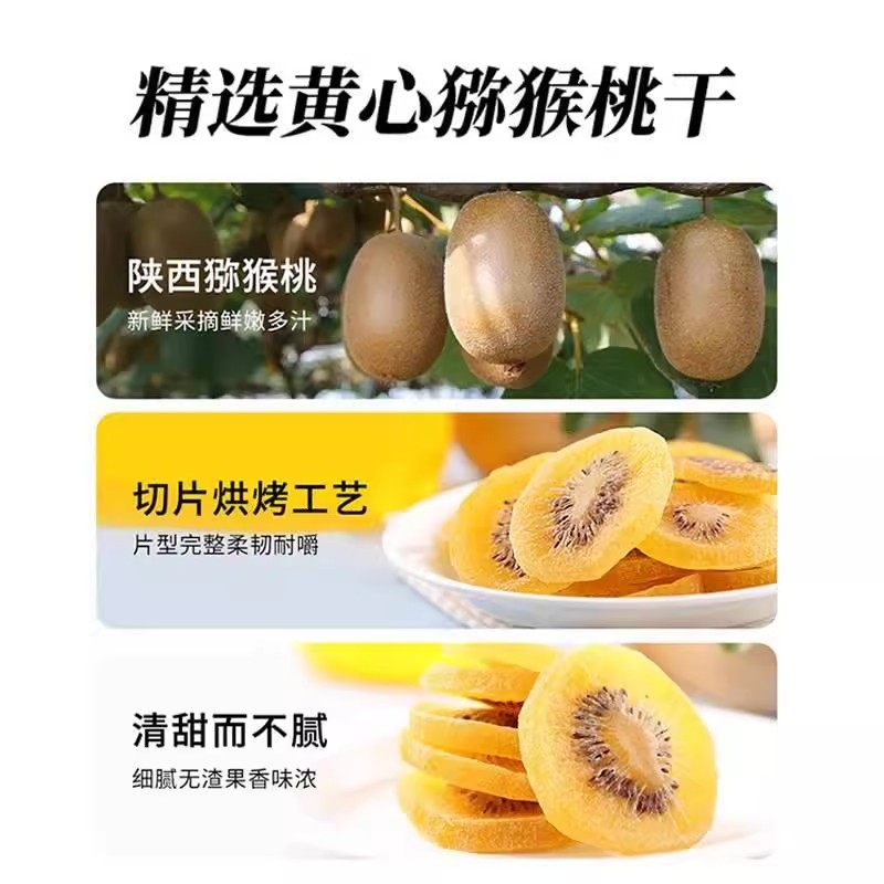 黄心猕猴桃干陕西特产奇异果干果脯休闲零食5斤散装批发大片