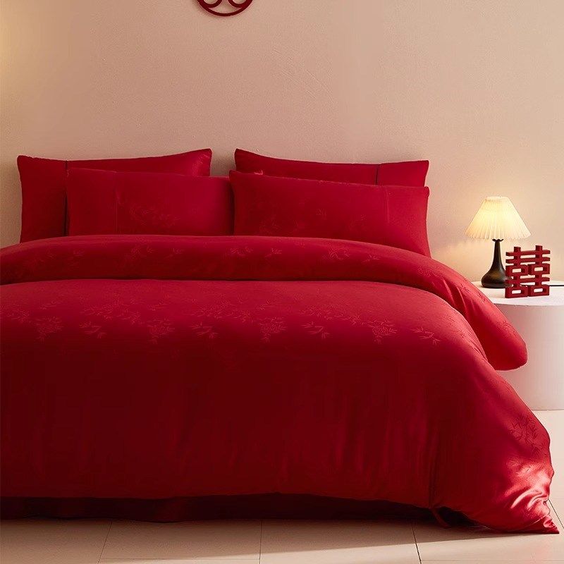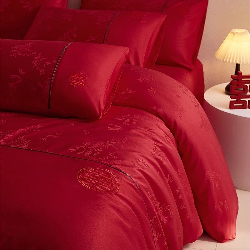 中式提花婚庆四件套红色结婚被套床单新婚礼床上用品婚房陪嫁
