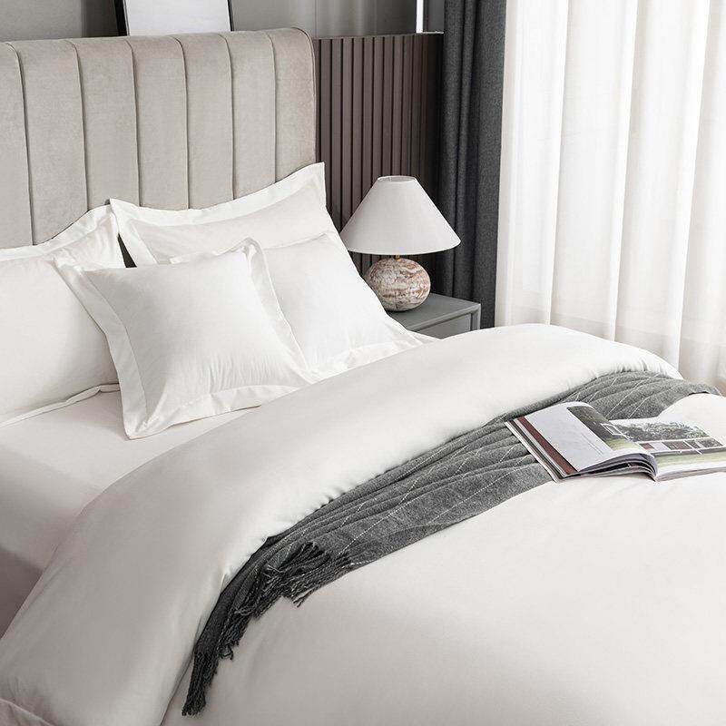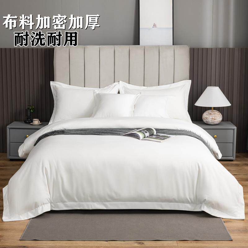 宾馆酒店床上用品四件套民宿风布草纯白色床品贡缎床单被套三件套
