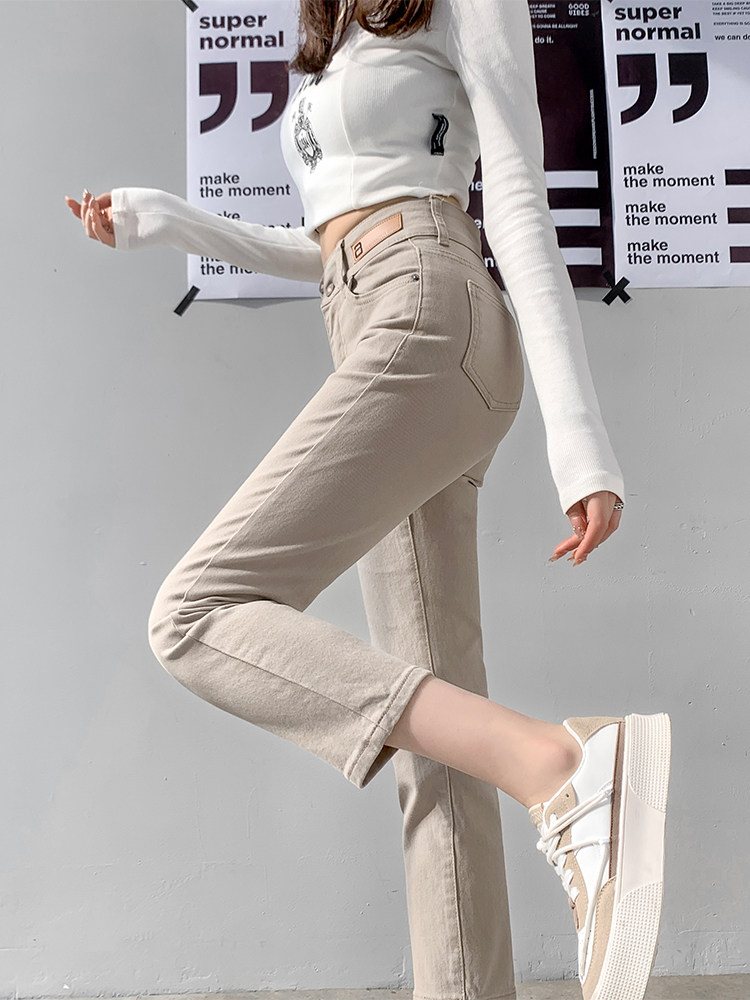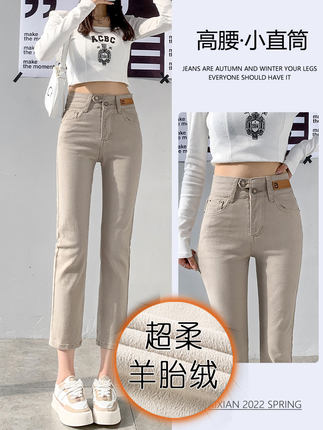 直筒加绒保暖牛仔裤女2025九分春
