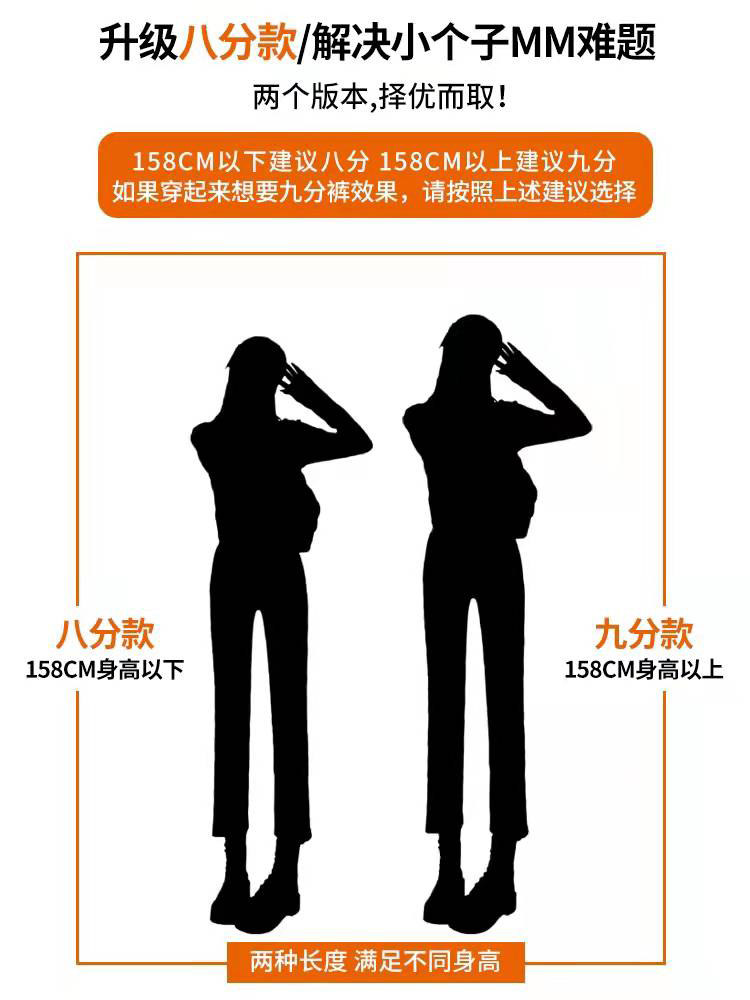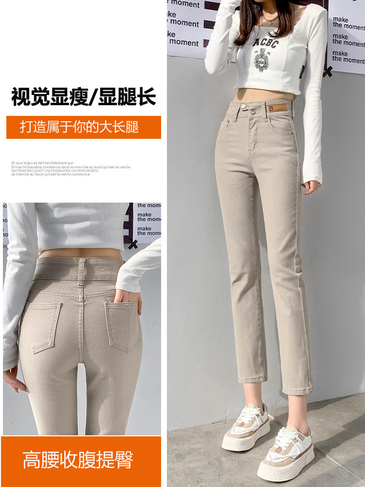 直筒加绒保暖牛仔裤女2025春秋高腰155八分九分小个子烟管裤弹力