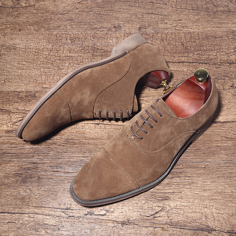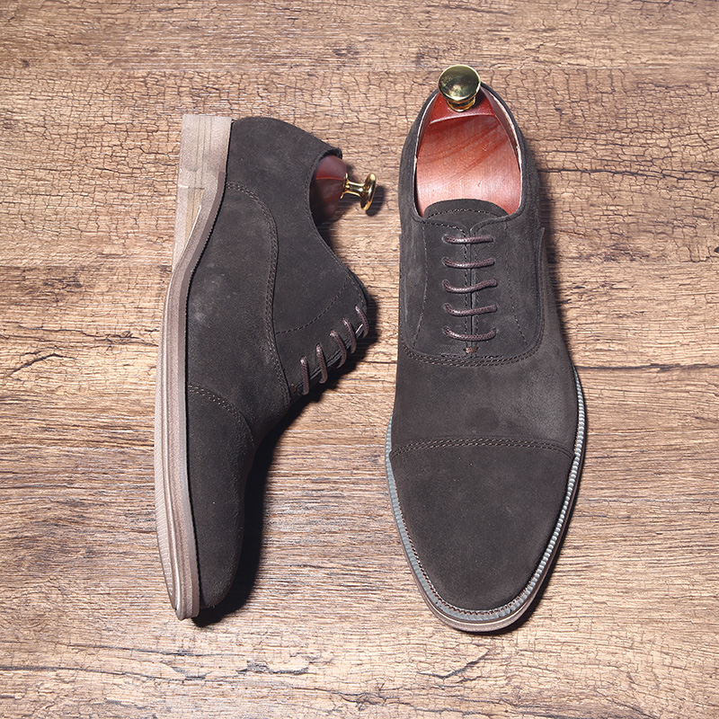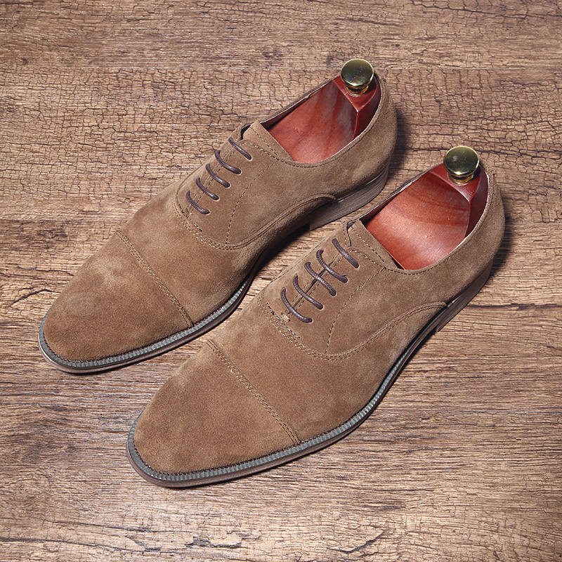 英伦复古特伦德三接头男士商务正装皮鞋反绒皮系带尖头办公室男鞋