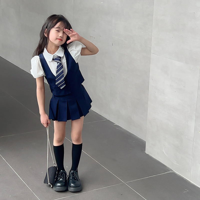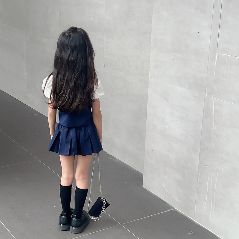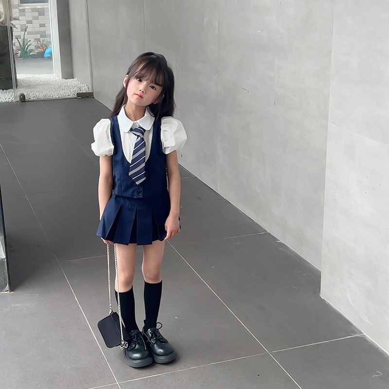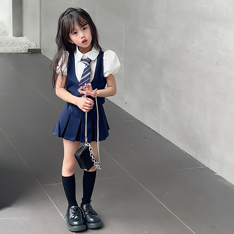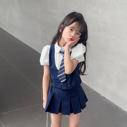 夏季新款童装女童学院风套装女宝短袖上衣半身裙裙裤英伦亲子装潮