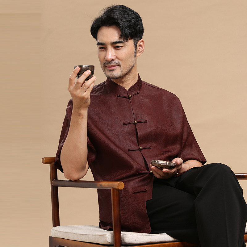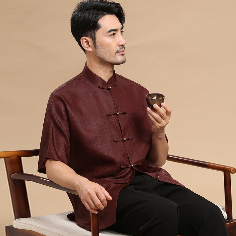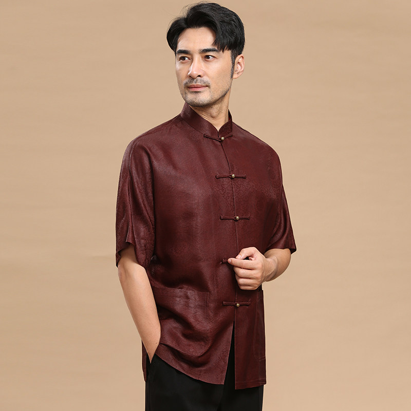 唐装男中式香云纱短袖衬衫