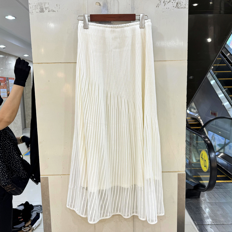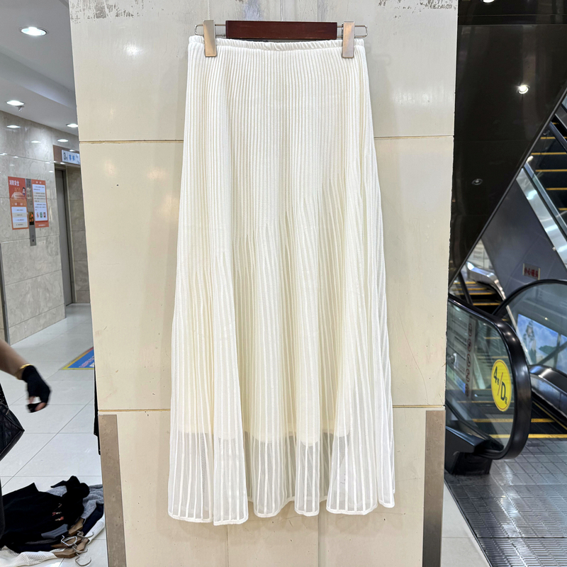 552 欧货秋装2025款时尚松紧高腰斜镂空竖条设计感针织中长半身裙