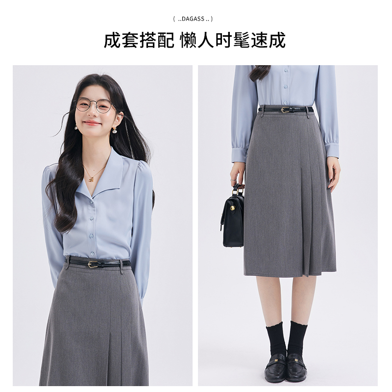 达佳诗蓝色衬衫女上衣长袖职业通勤法式早秋翻领女款新款面试衬衣