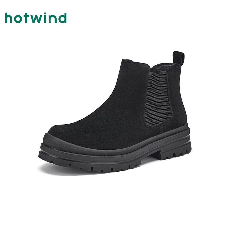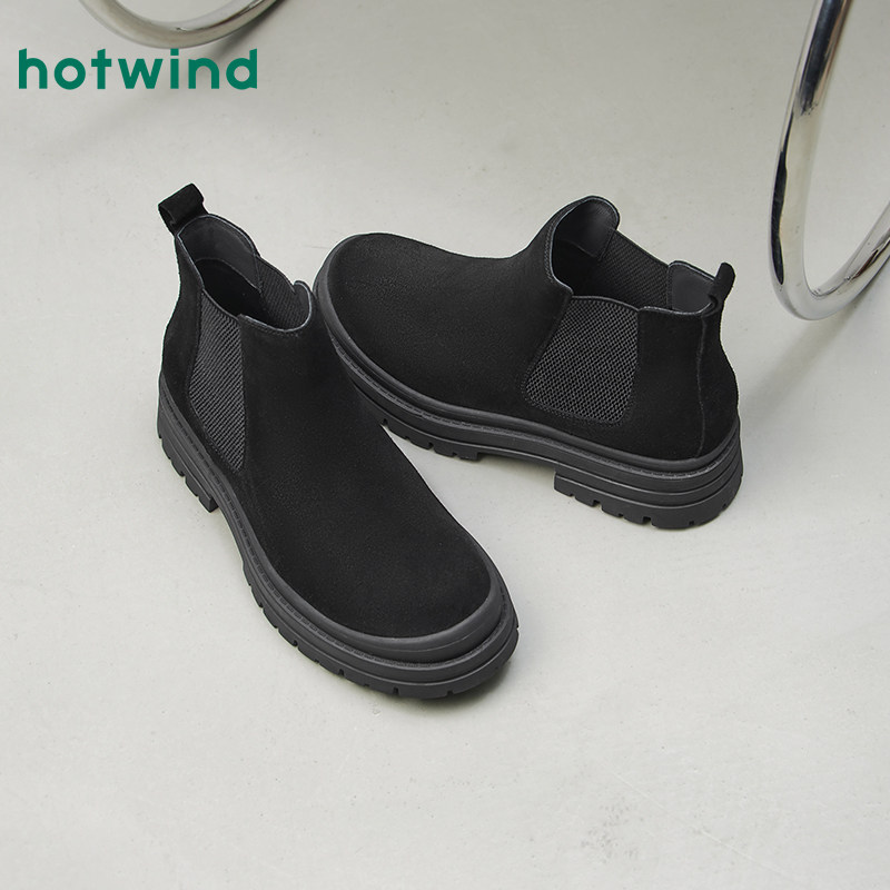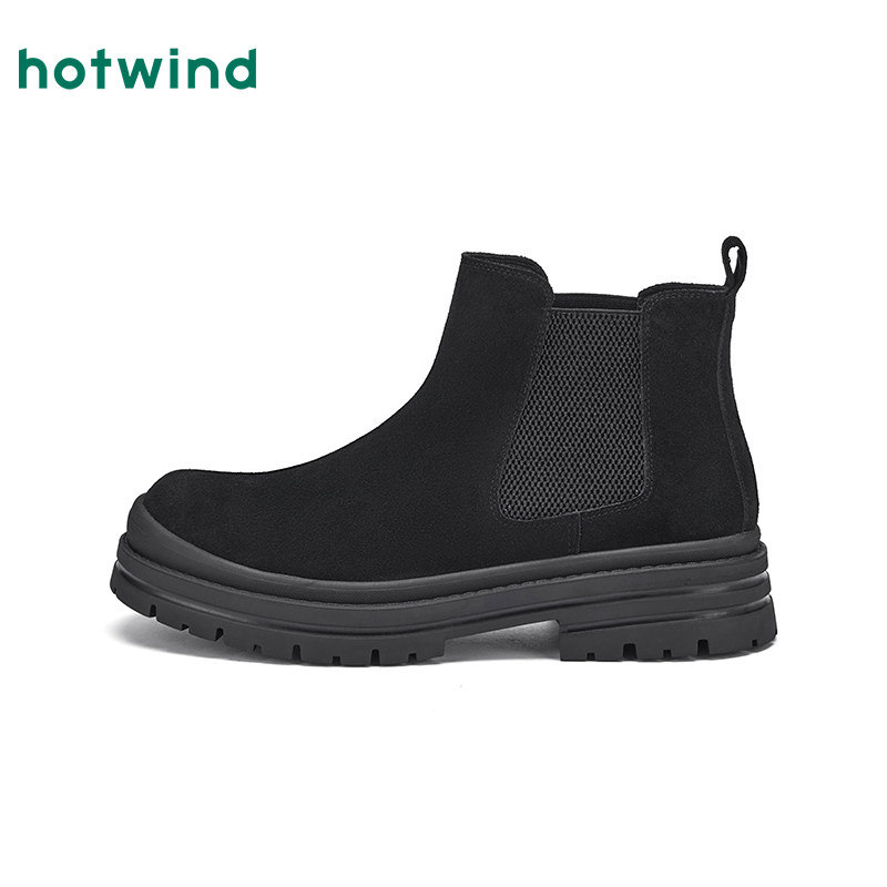 热风男鞋2025年冬季新款男士时尚休闲靴子复古切尔西靴百搭短筒靴