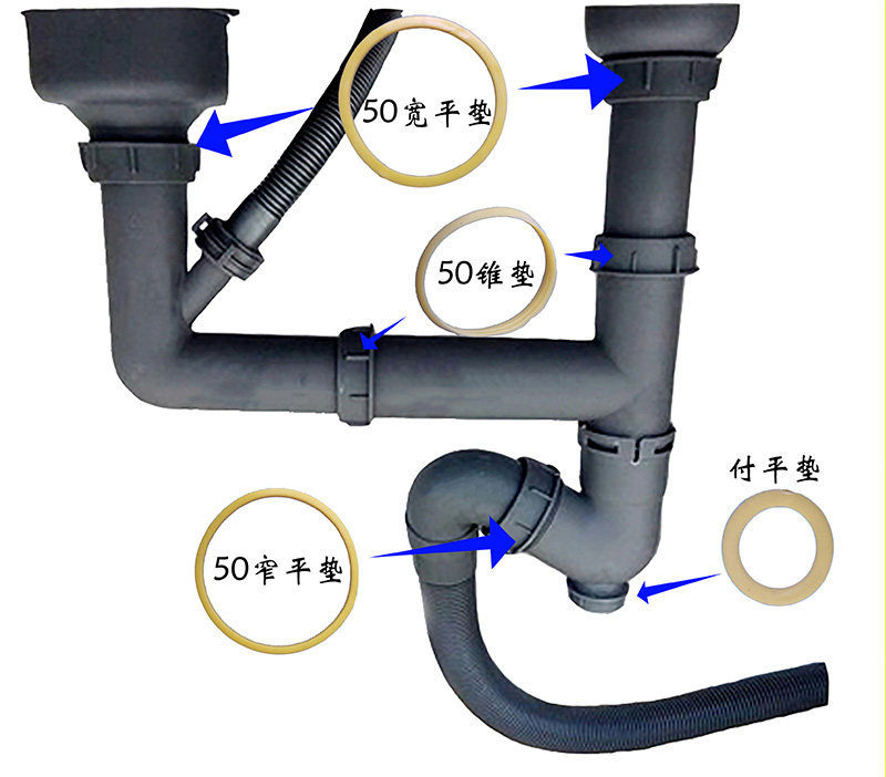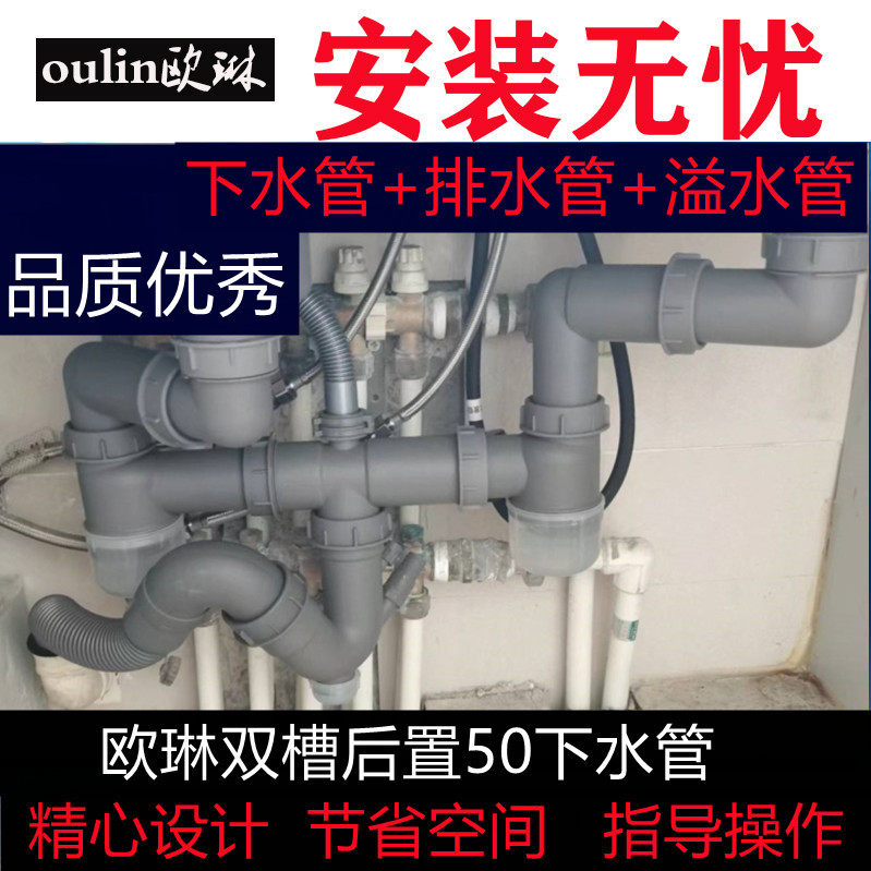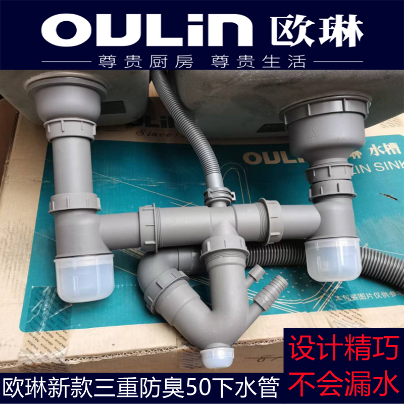 欧琳水槽配件后置防臭下水管套装140落水器114双槽50接口洗碗提笼