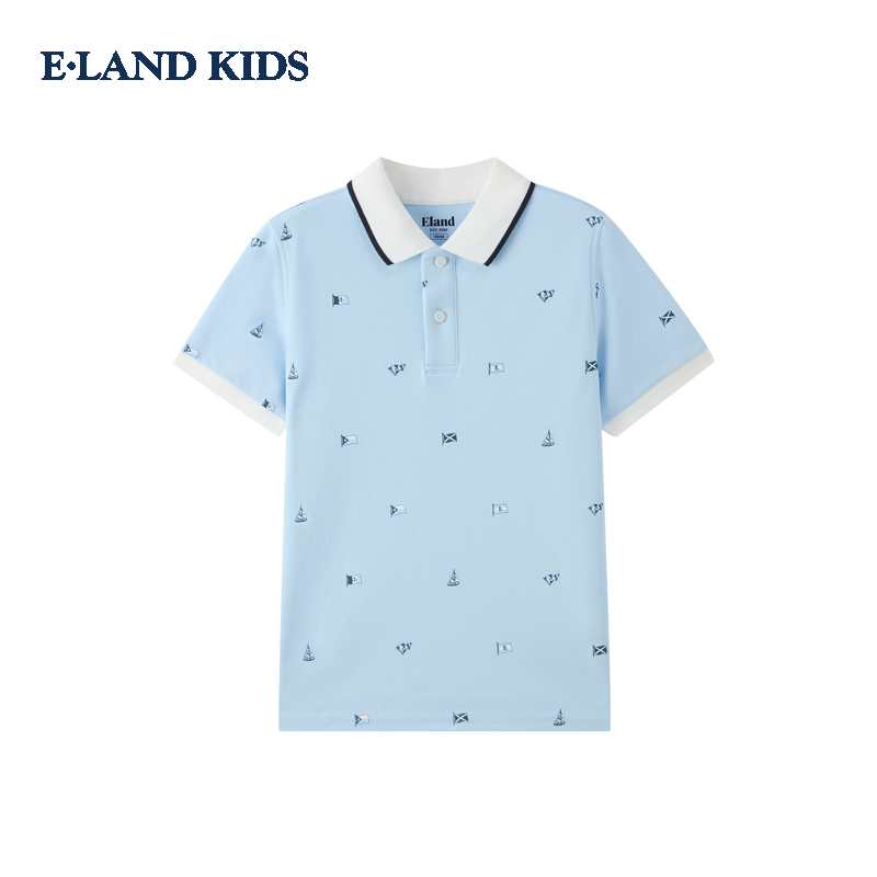 eland kids衣恋童装男童T恤2025年夏季新品简约风印花撞色POLO衫
