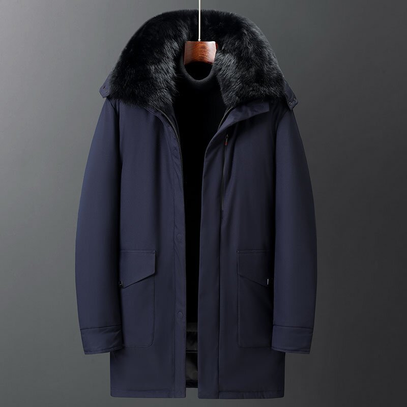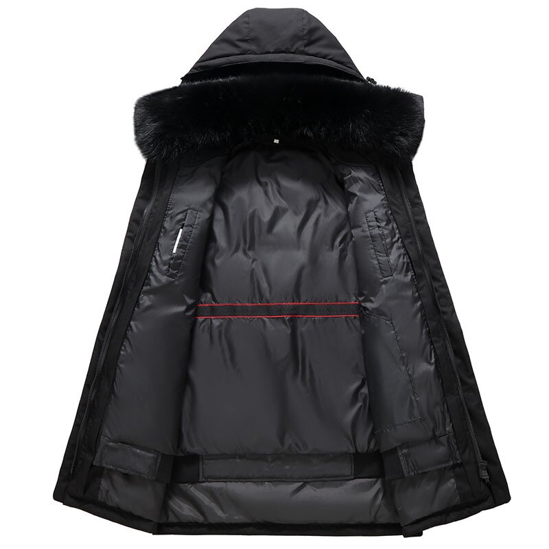 2025新款羽绒服男中长款过膝加厚保暖白鸭绒外套冬季连帽面包服