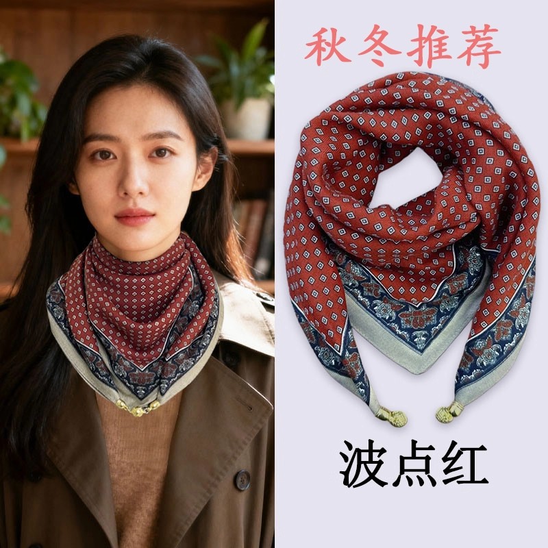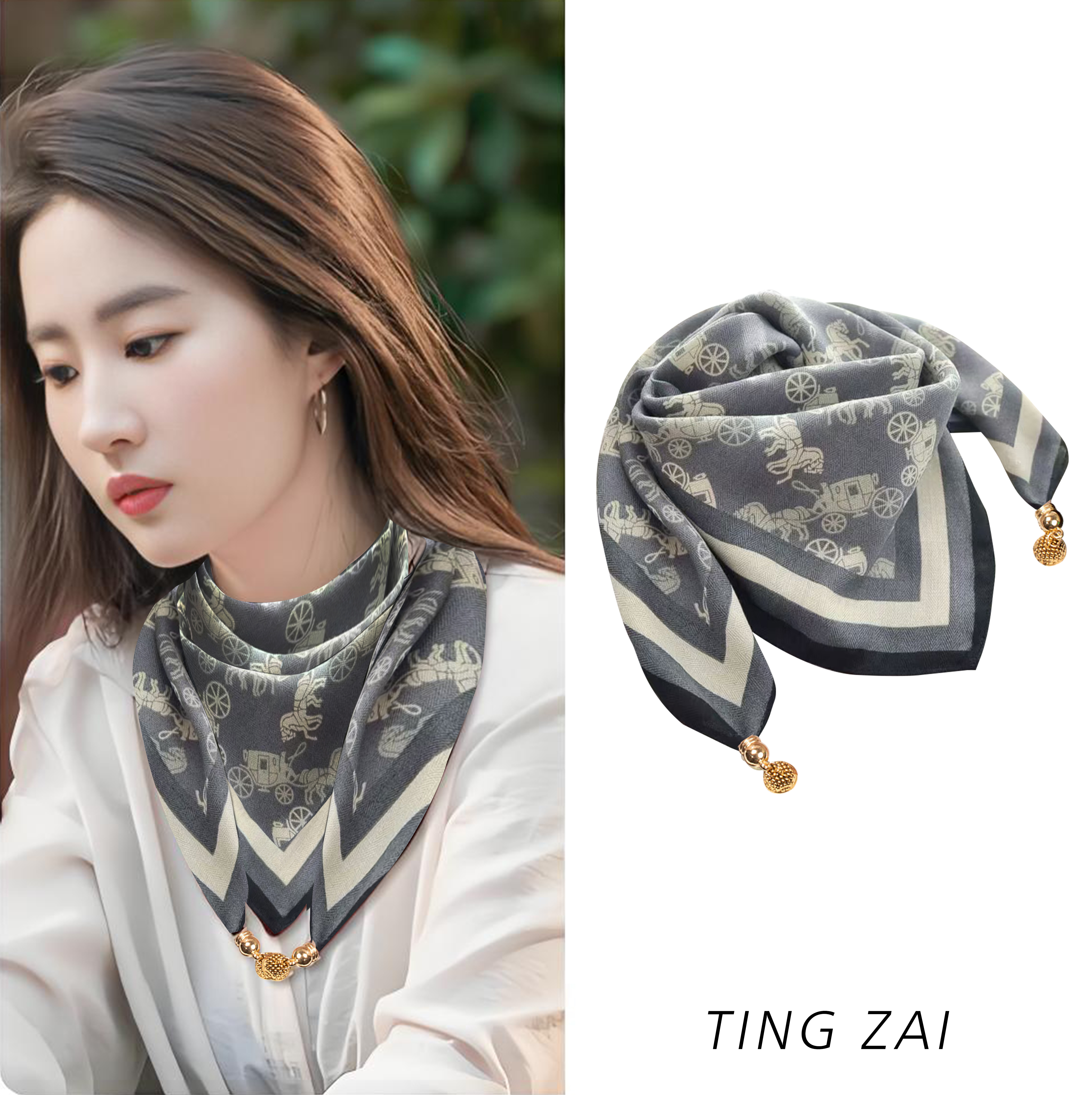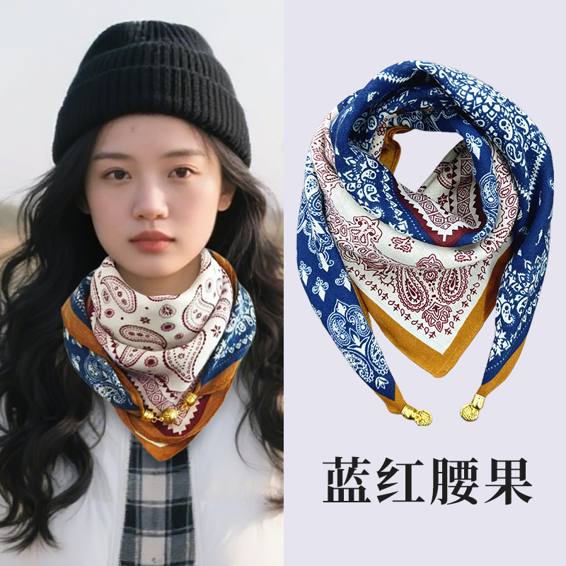磁吸扣围巾小方巾女装饰护颈春秋韩版丝巾百搭洋气防风秋冬季围脖