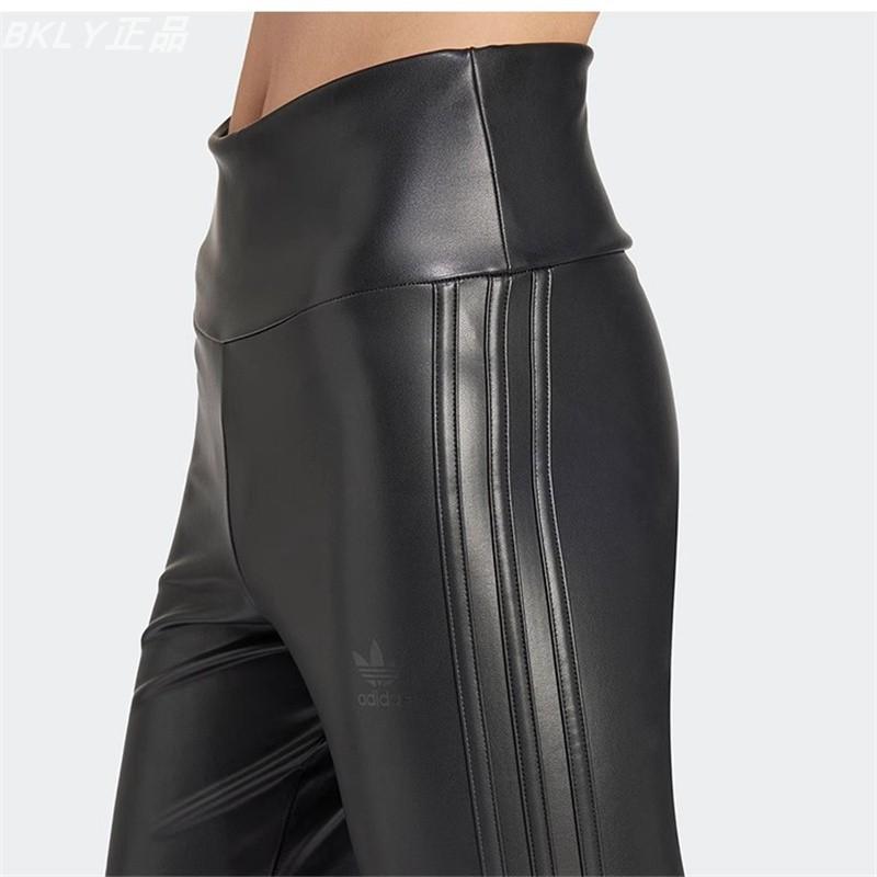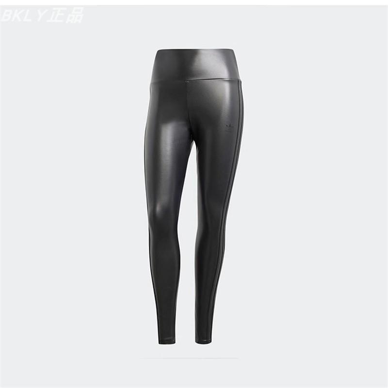 阿迪达斯三叶草明星同款女弹力腰身亮泽感仿皮紧身运动长裤IY9022