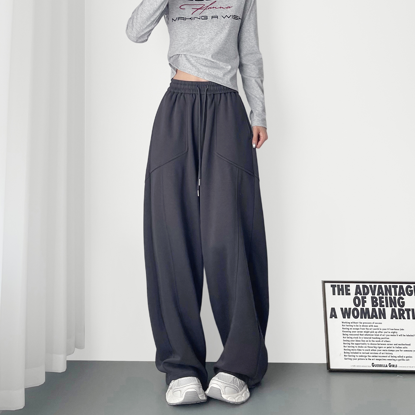 秋季显瘦软糯阔腿裤女秋季胖mm舒适宽松休闲大码慵懒风纯色运动裤