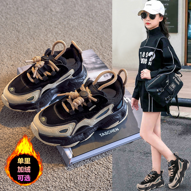 官方品牌联名儿童女童运动鞋2025春秋冬男童老爹鞋加绒二棉中大童