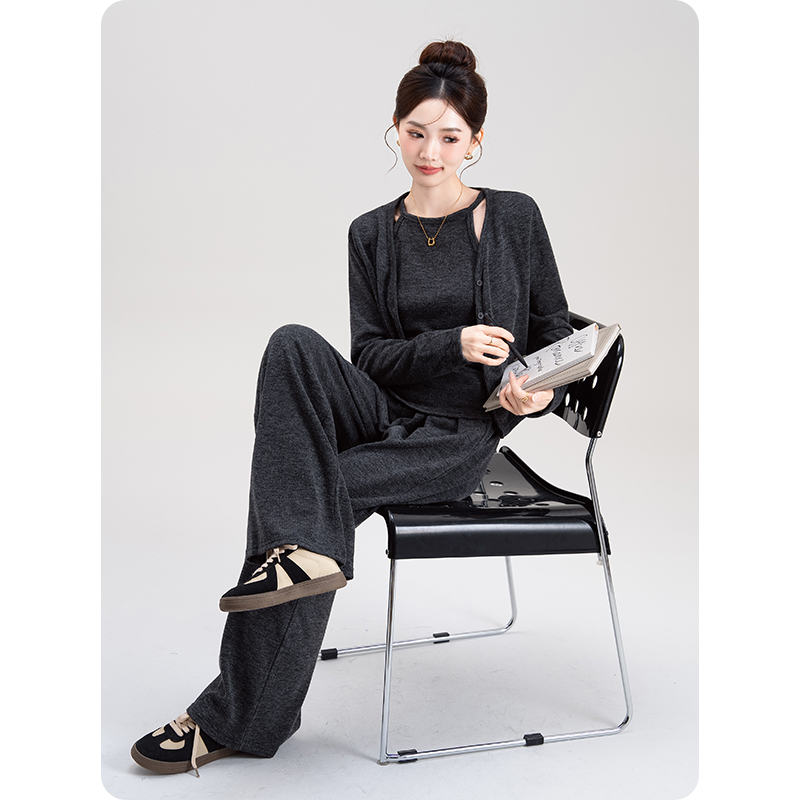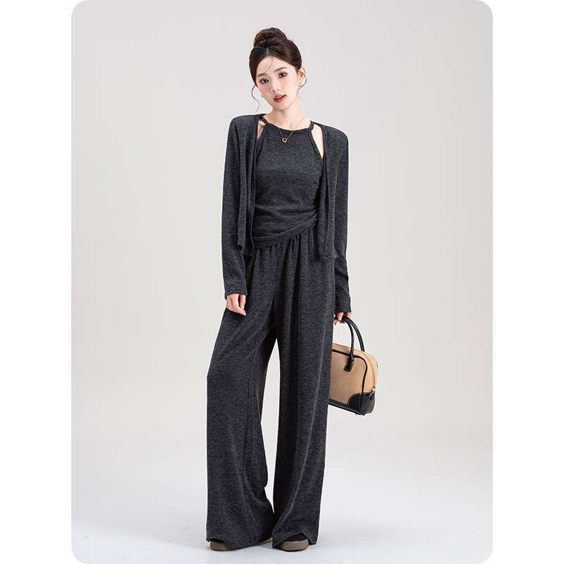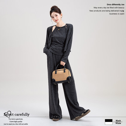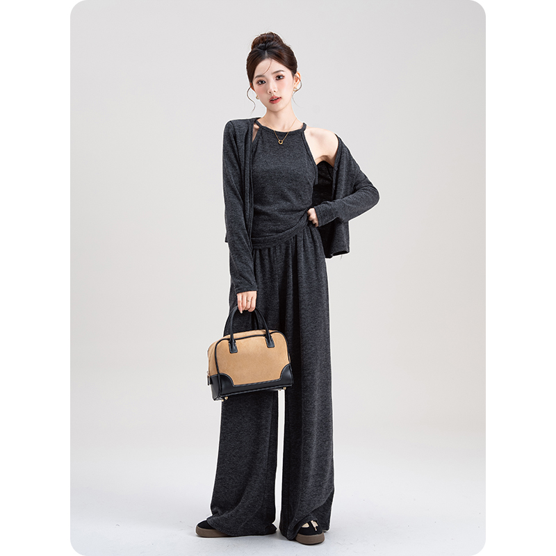 套装2025新款女装秋季韩版气质显瘦挂脖吊带背心开衫休闲裤三件套