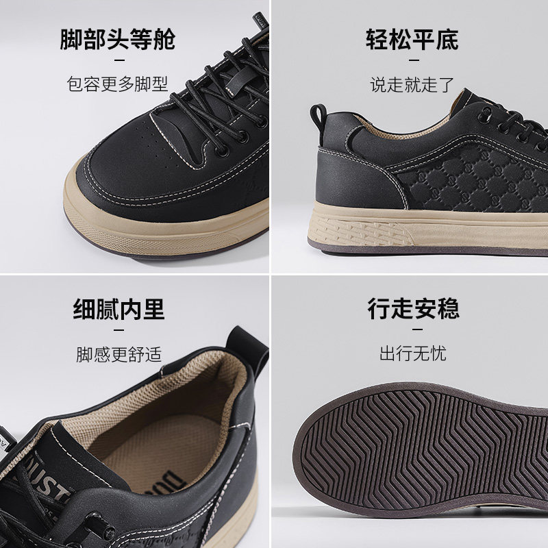 大东板鞋男鞋2025春秋季新款休闲平底中跟套脚圆头印花小白鞋0206