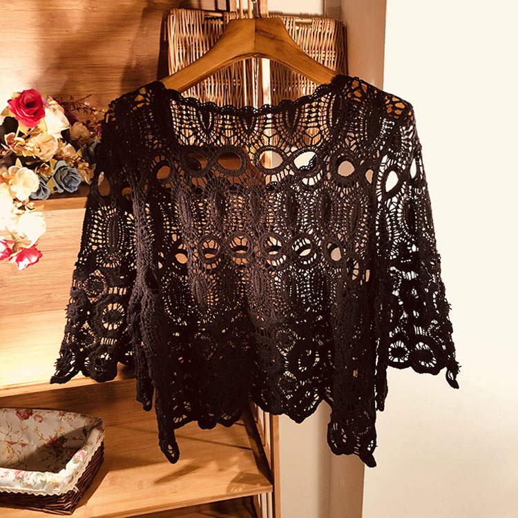 2023夏季新款大码镂空针织罩衫女配裙子外穿宽松短款钩针防晒上衣