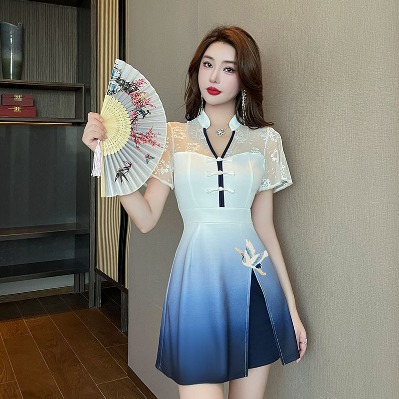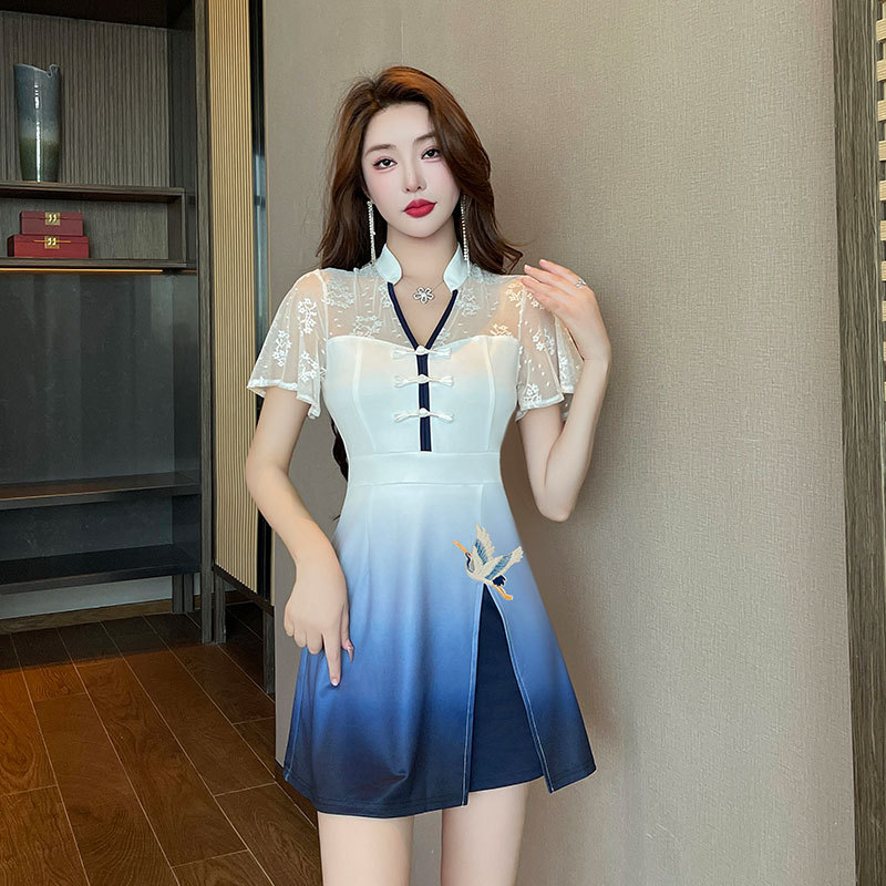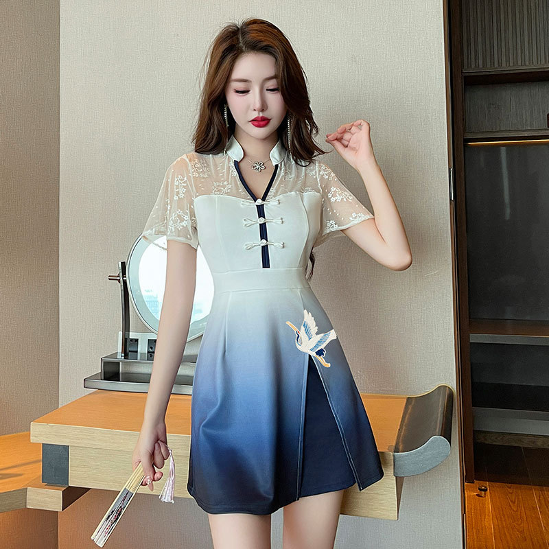 足浴技师工作服女新款改良旗袍性感连衣裙美容院工装3609连衣裙