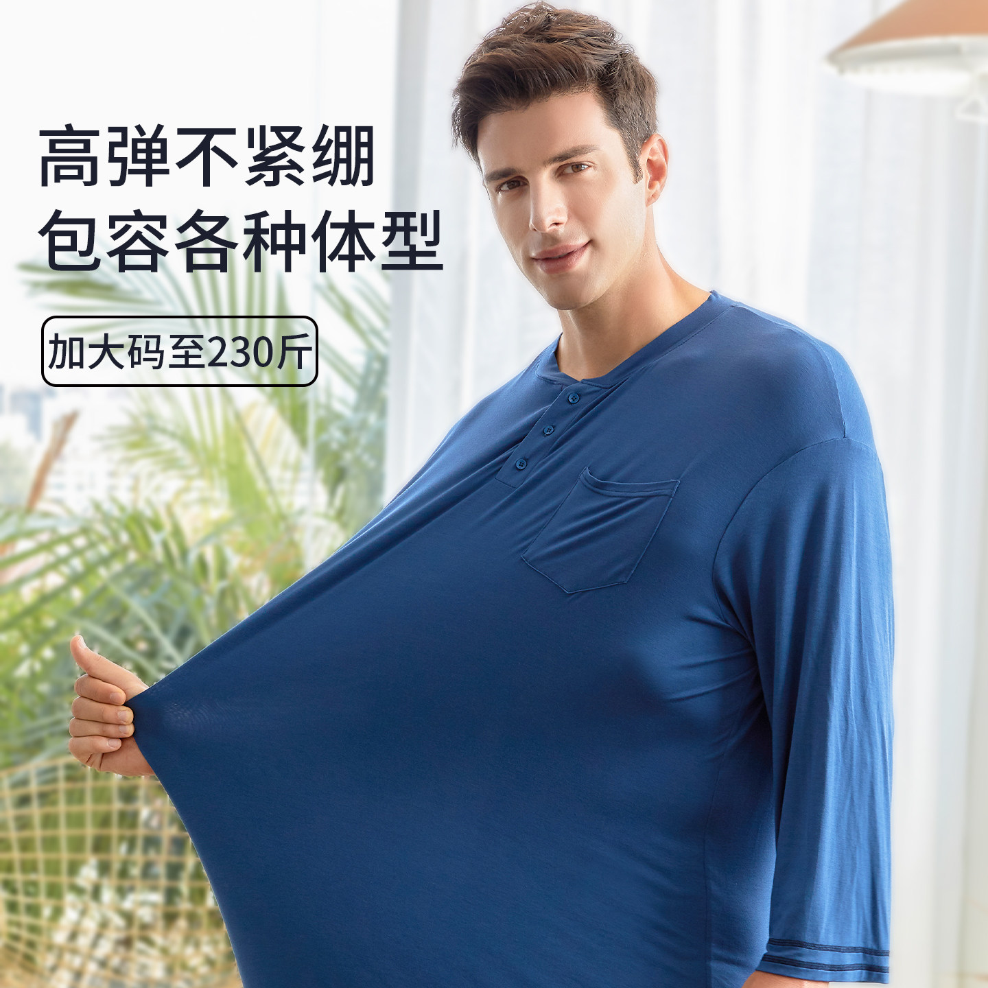 宽松大码莫代尔男士睡裙一体睡衣