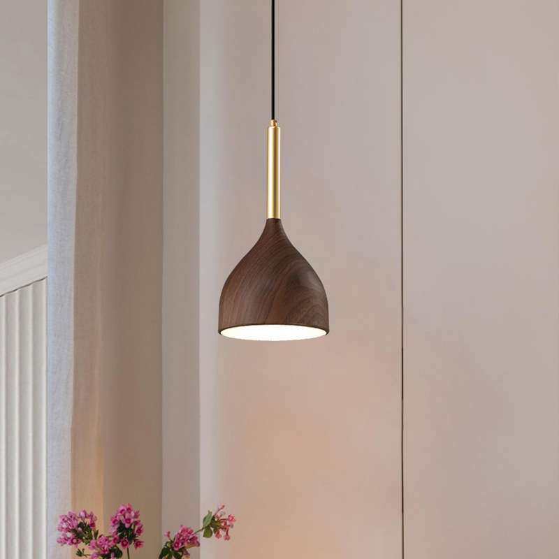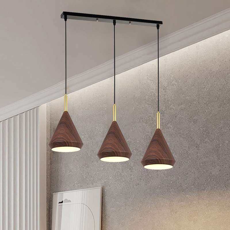 新中式三头餐厅吊灯现代简约创意中山木纹床头餐桌咖啡厅吧台灯具