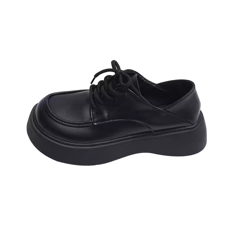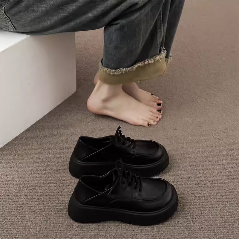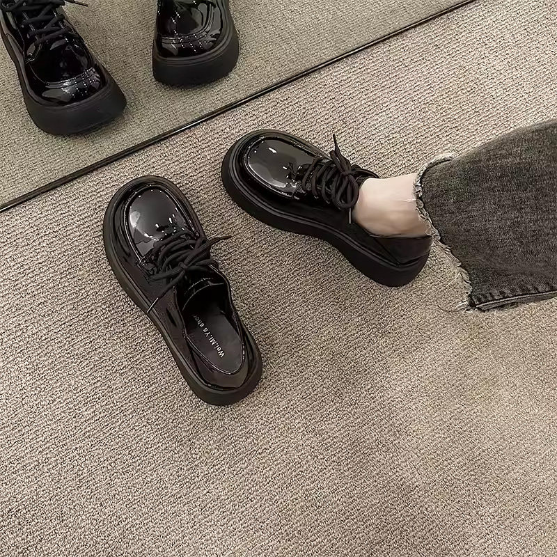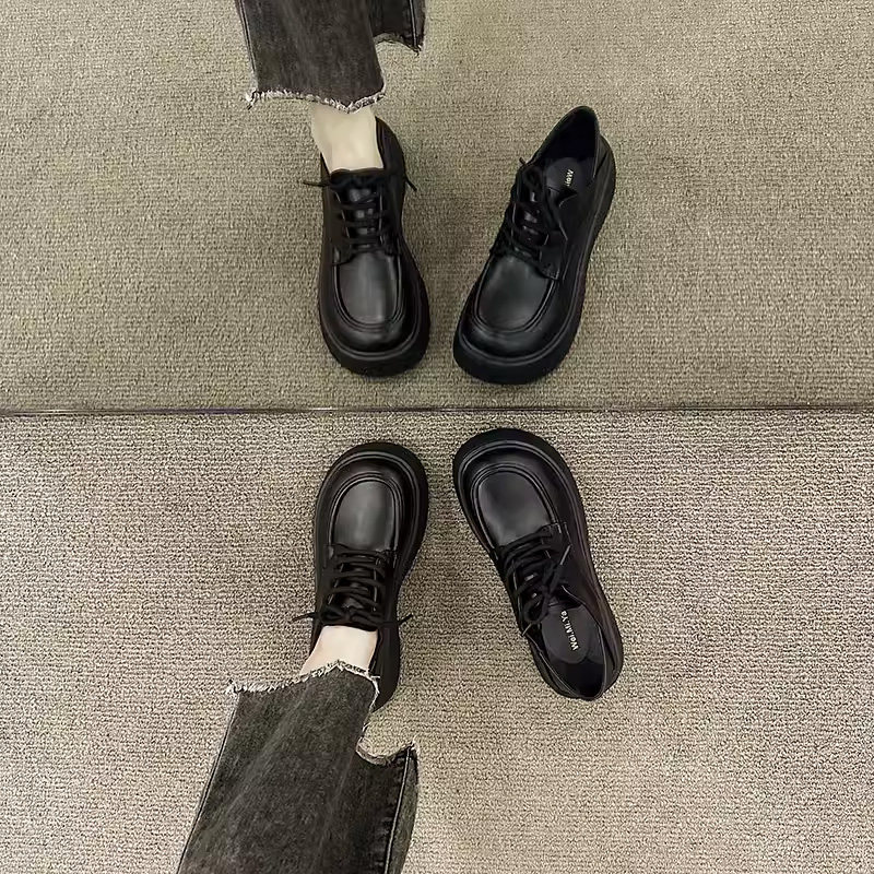 英伦风小皮鞋女2025新款百搭厚底黑色春秋系带jk软底日系软皮小众