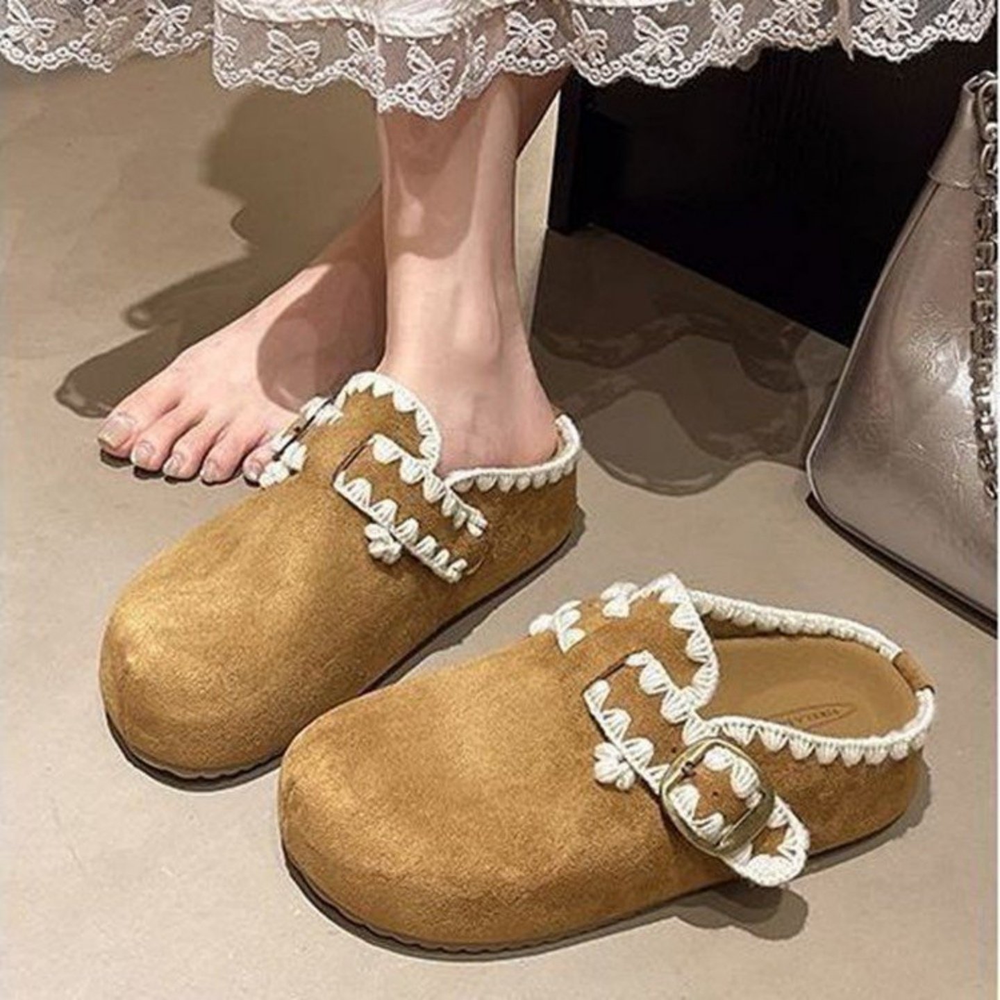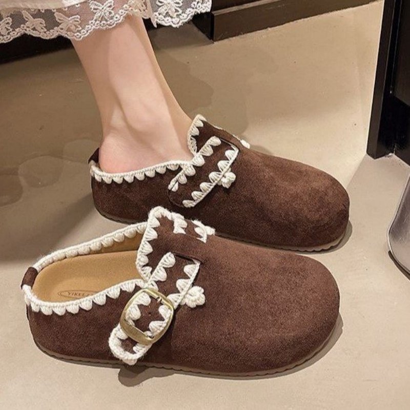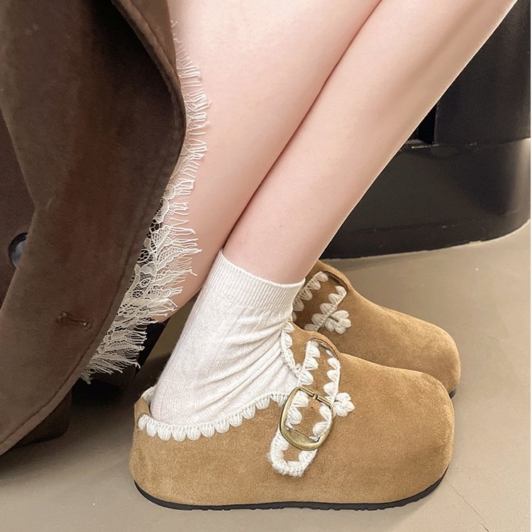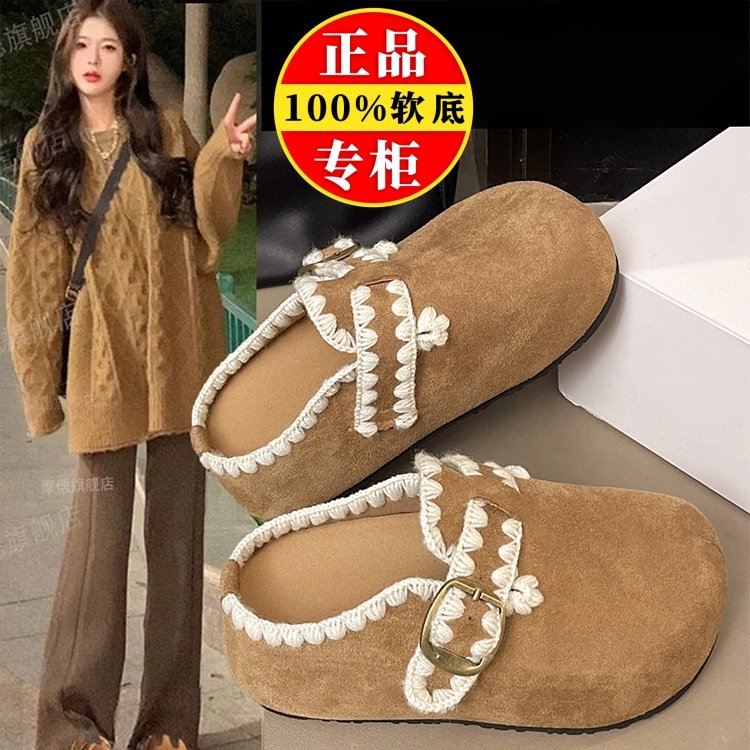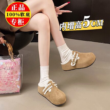 品牌真皮勃肯鞋子女2025秋新款厚底内增高一脚蹬包头半拖鞋豆豆鞋