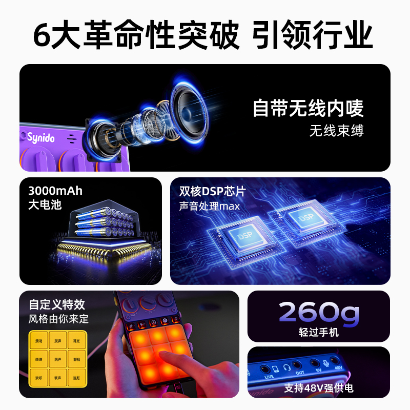 Synido森林岛全新户外GOGO手机直播声卡手持式带电池内唛主播唱歌
