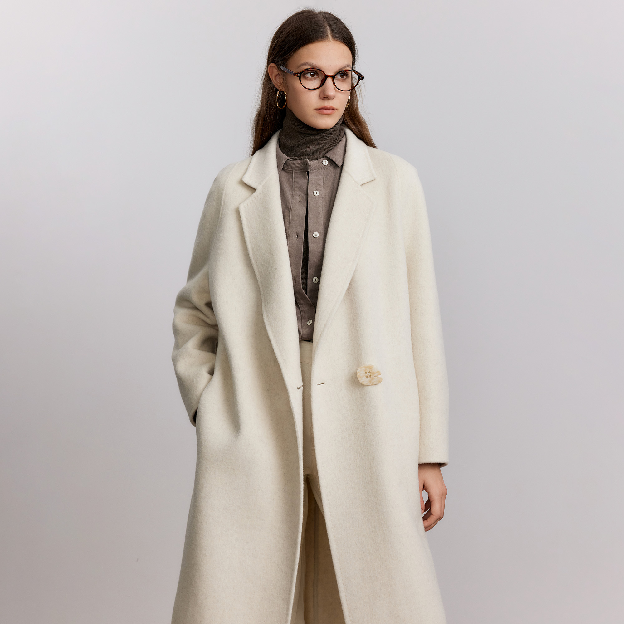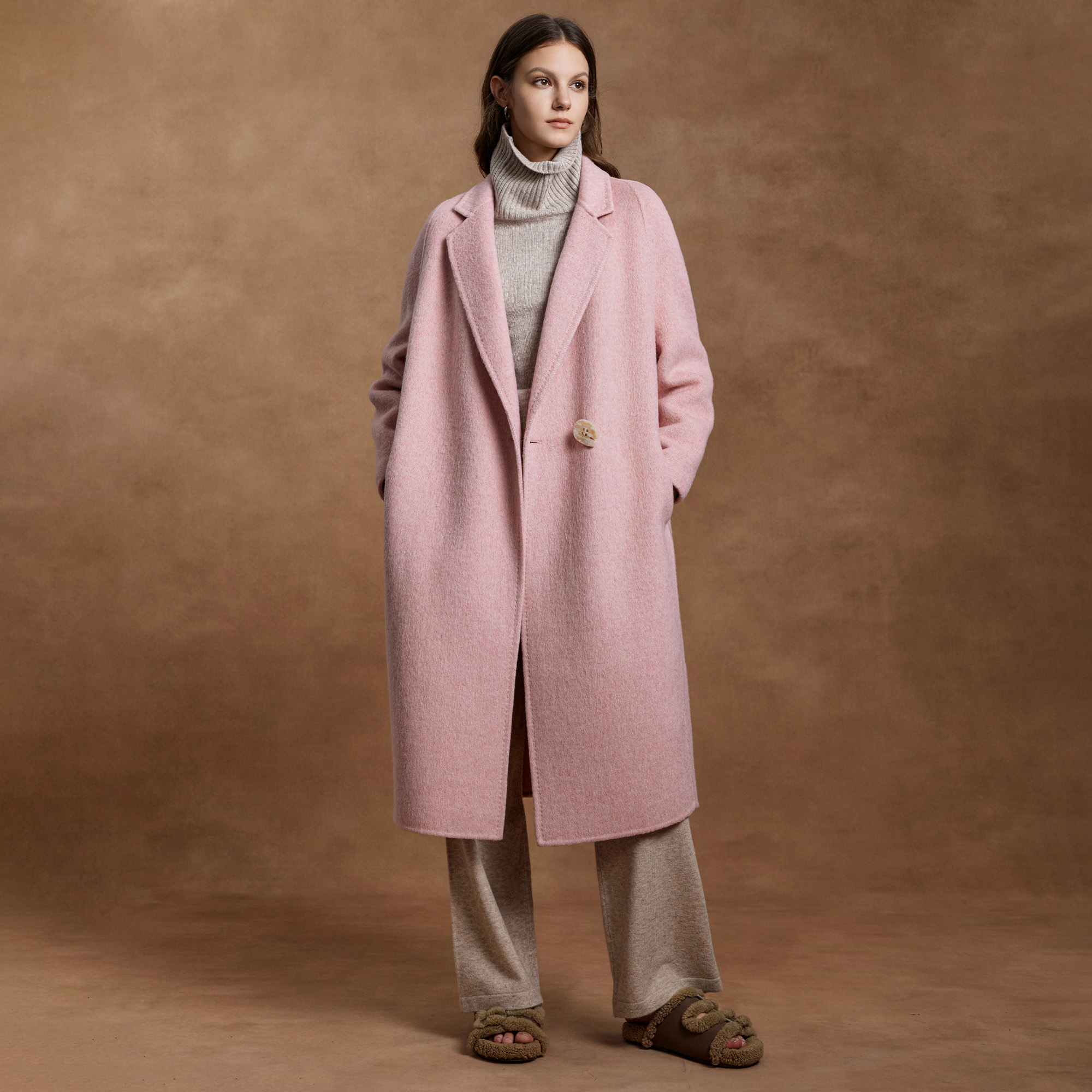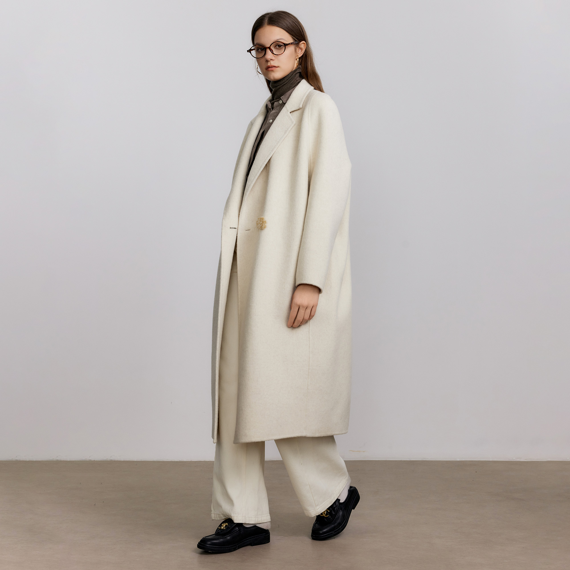 Basic House/百家好氛围感双面羊绒大衣女2025冬长款羊毛呢外套