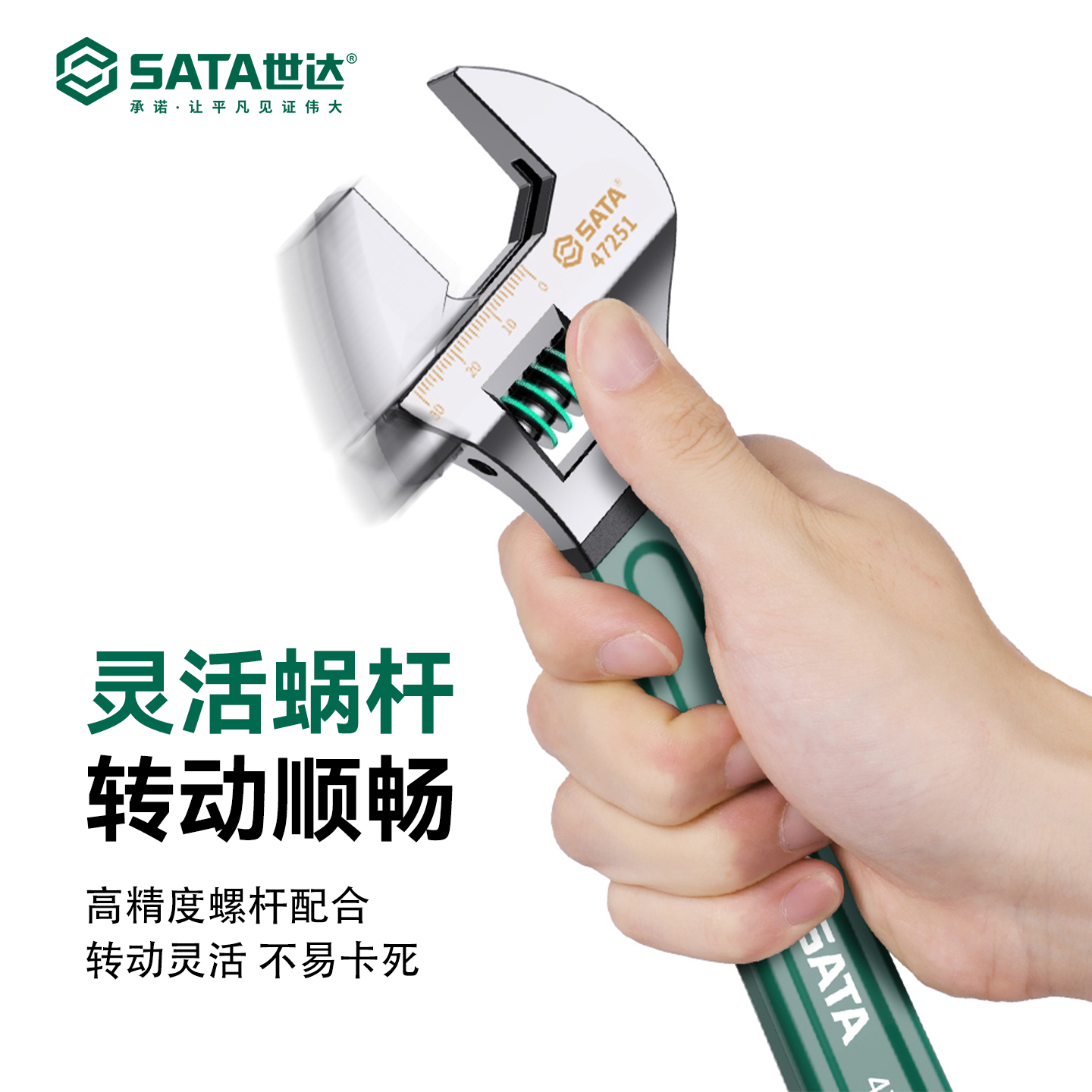 世达活动扳手正品12寸活动扳手大口径8/6/10寸短柄可调节卫浴扳手