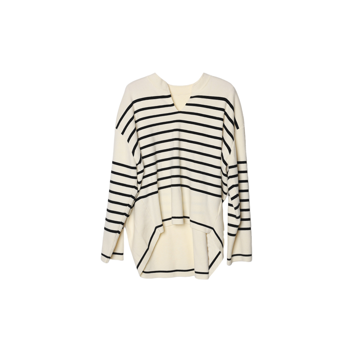 西町村屋慵懒风条纹毛衣女秋季新款休闲宽松套头针织衫XH9C10048