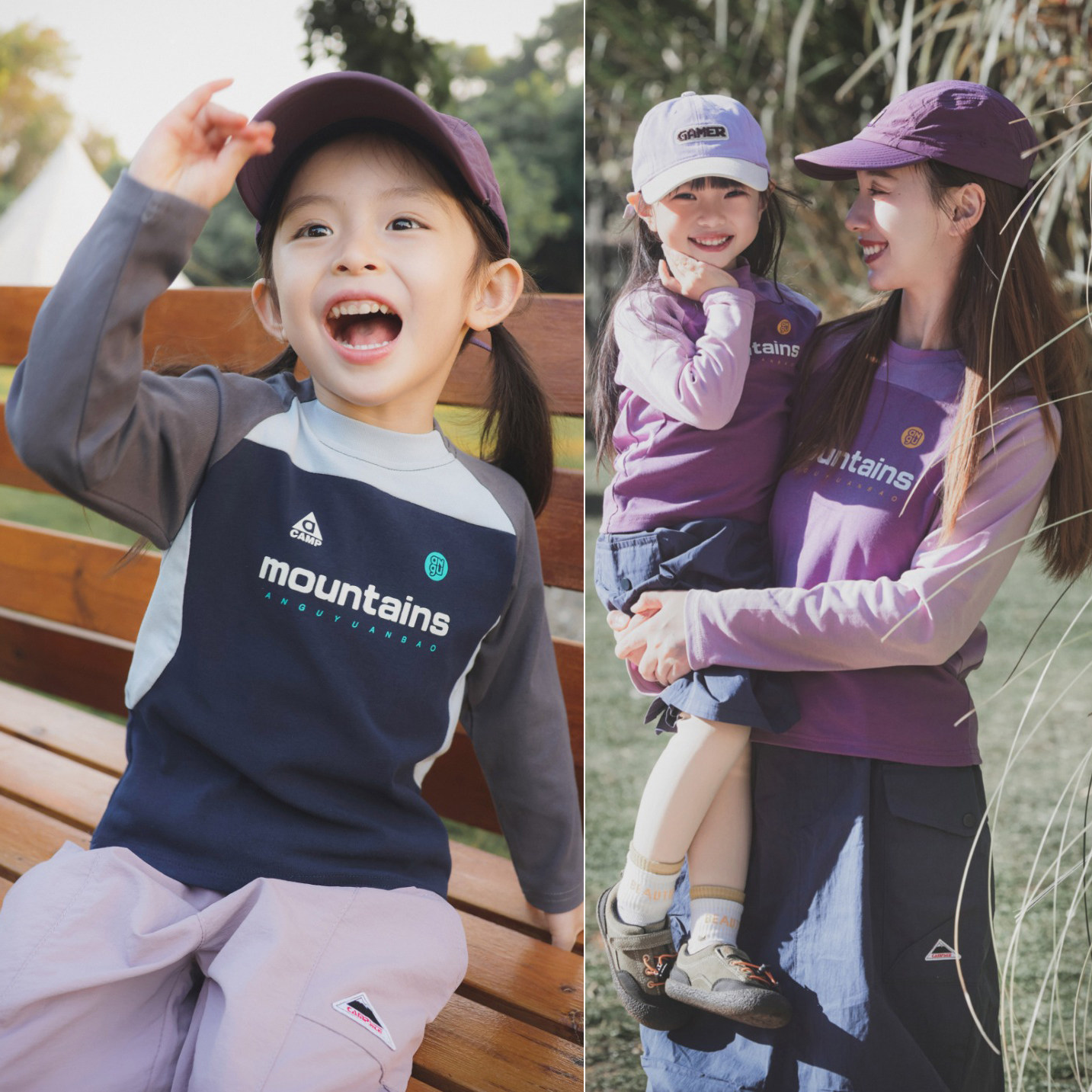 山系户外男童女童弹力运动长袖T恤2025春秋装儿童上衣母女亲子装