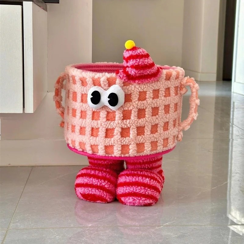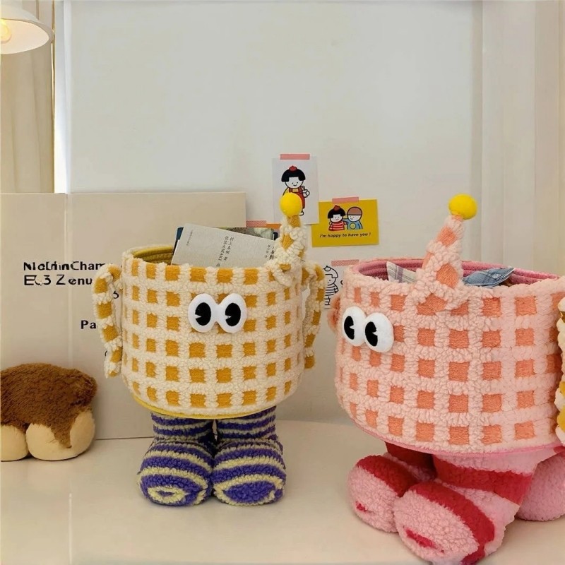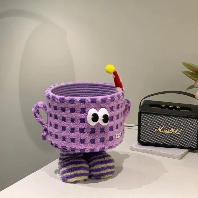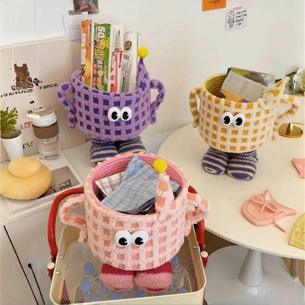 小怪兽创意礼品编织收纳筐可爱卡通多巴胺玩具杂物篮零食桌面网红