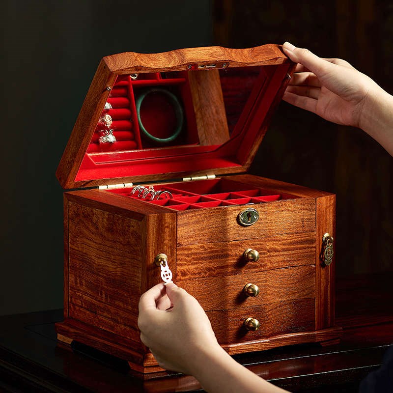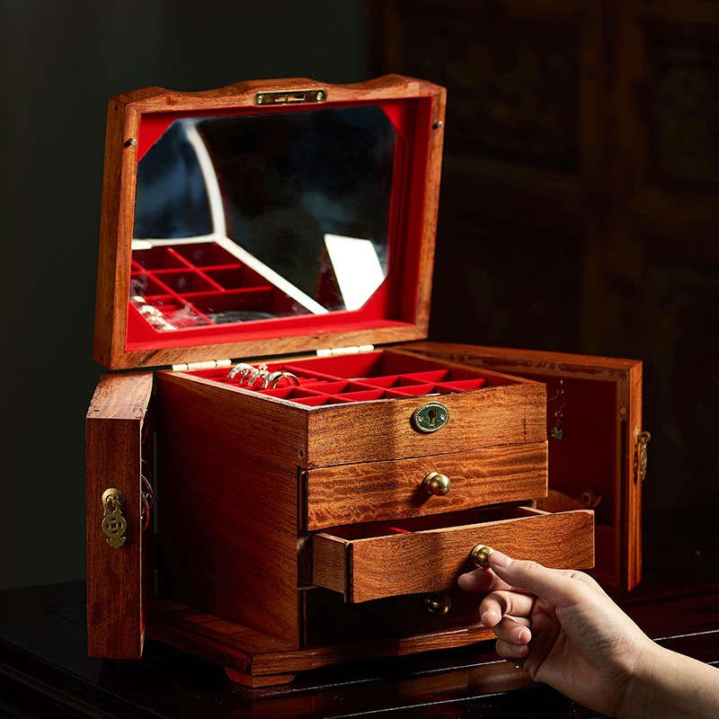 红木首饰盒结婚礼物中式复古饰品C盒梳妆箱实木收纳盒大容量珠宝