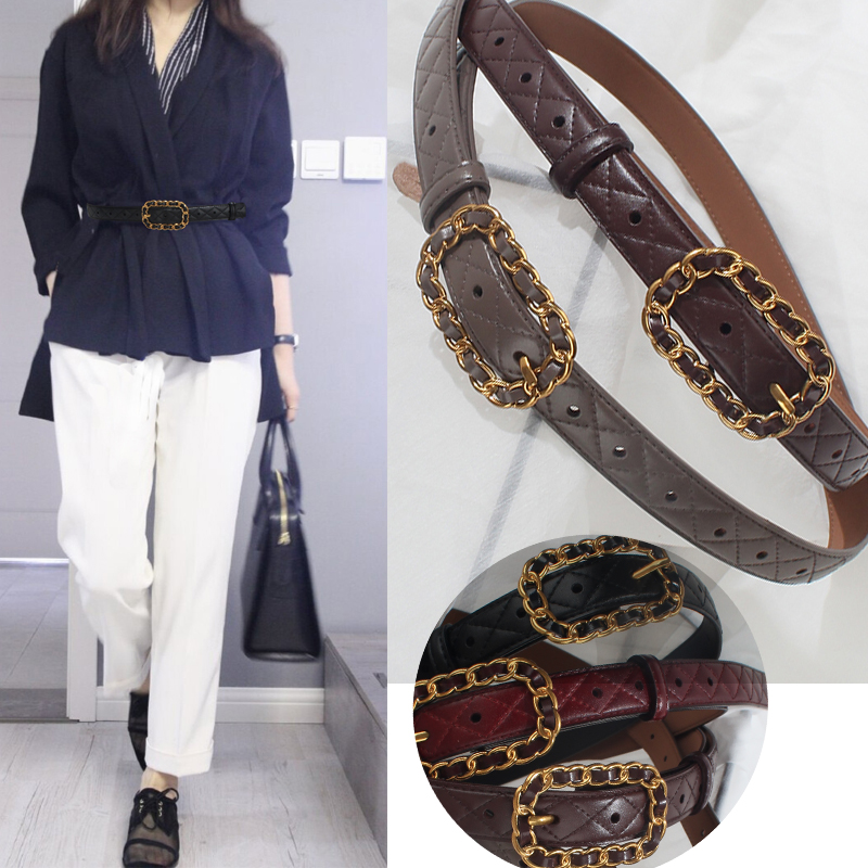 真皮皮带女法式复古格纹小众设计牛皮装饰配连衣裙牛仔裤裤带腰带