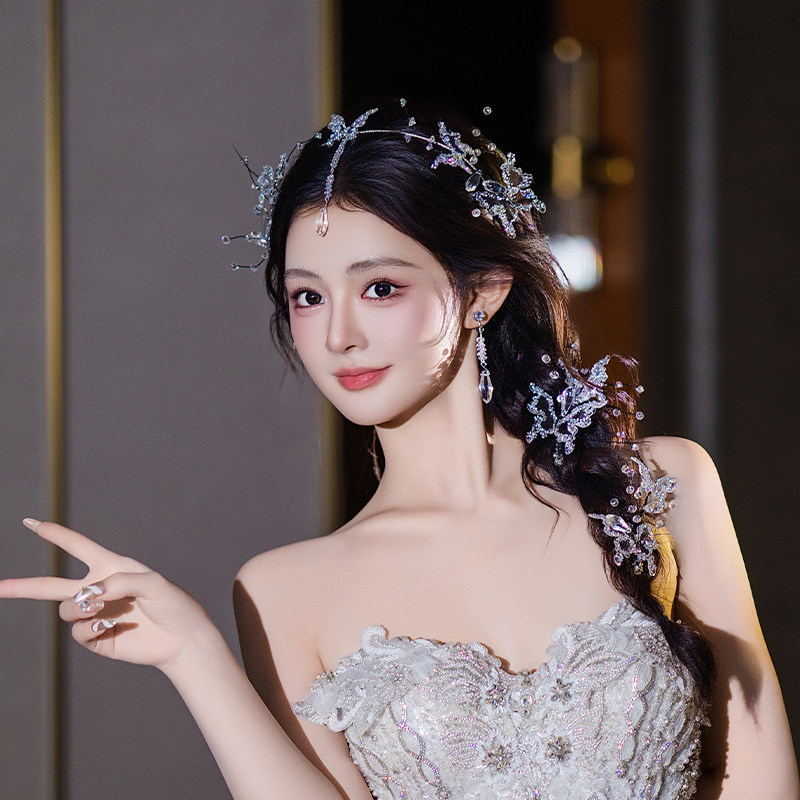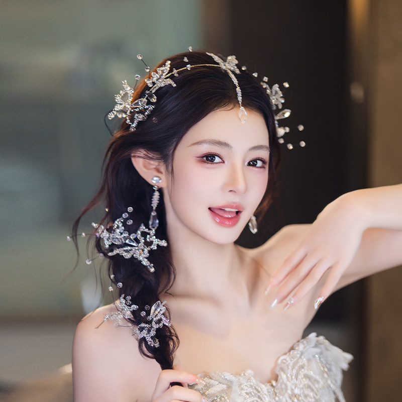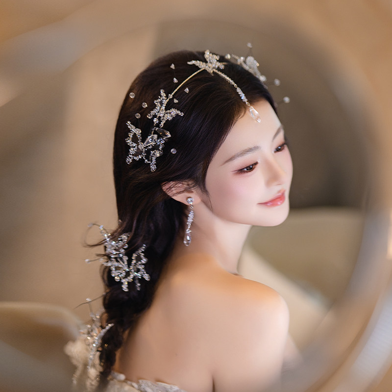 韩式精致新娘公主造型头饰超仙蝴蝶婚纱甜美配饰敬酒晨袍礼服发饰