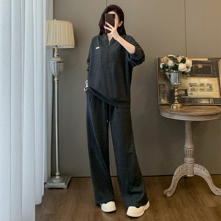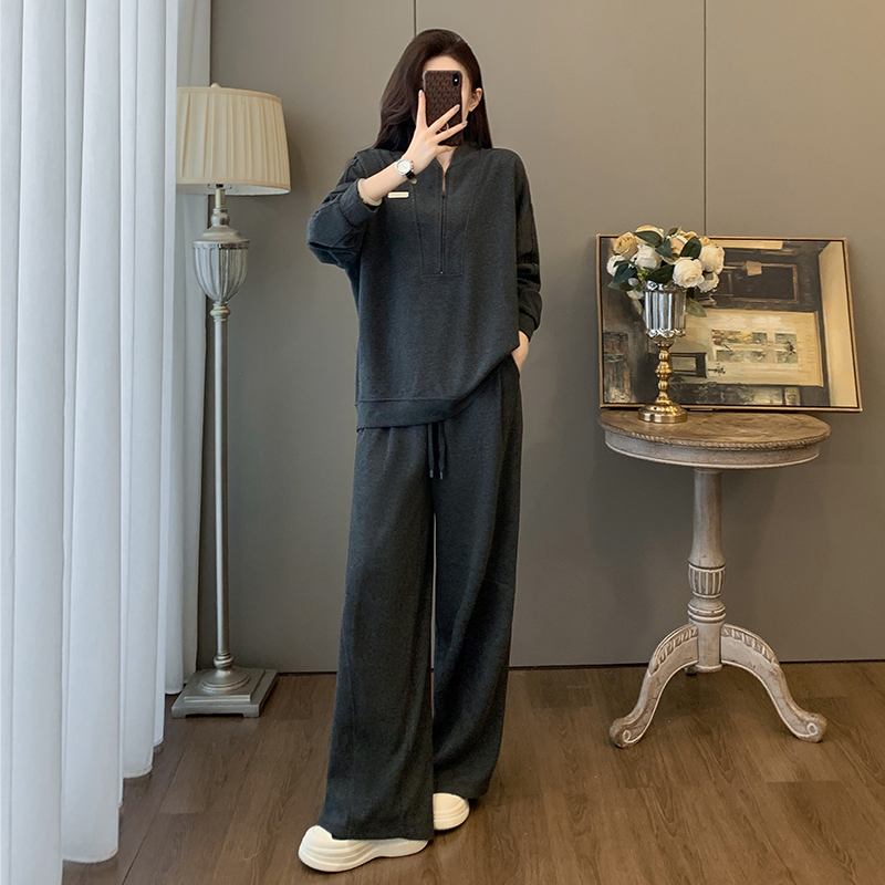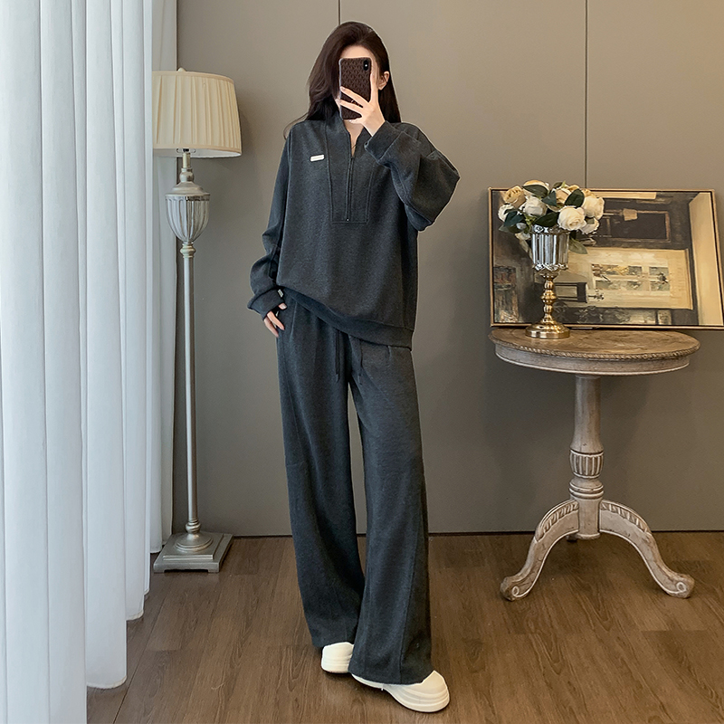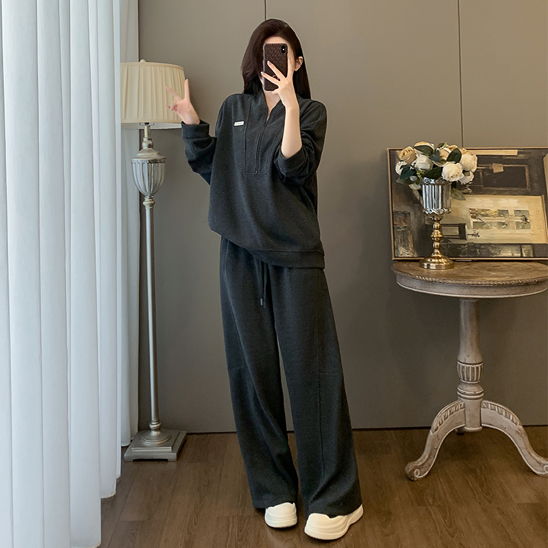 韩式时尚休闲套装女秋冬高级感慵懒风半拉链卫衣阔腿裤运动两件套