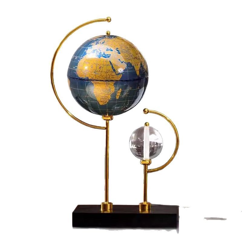 轻奢水晶a球旋转地球仪摆件书房办公室桌面酒柜装饰品书店艺术摆