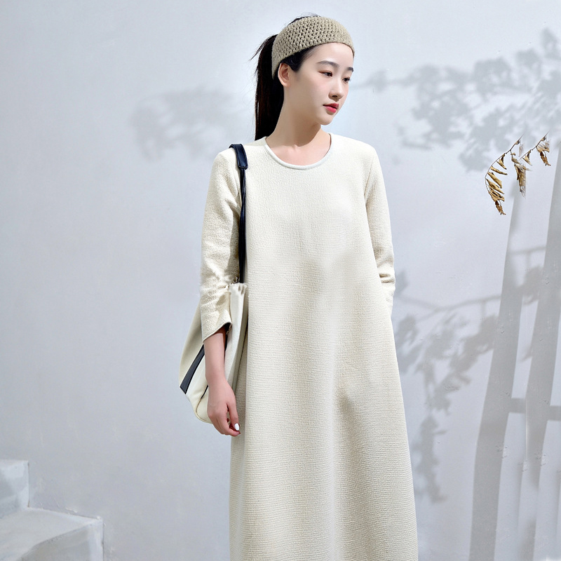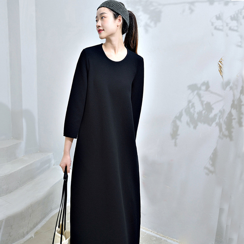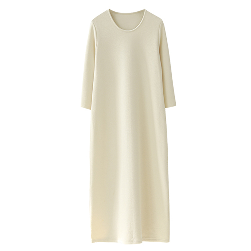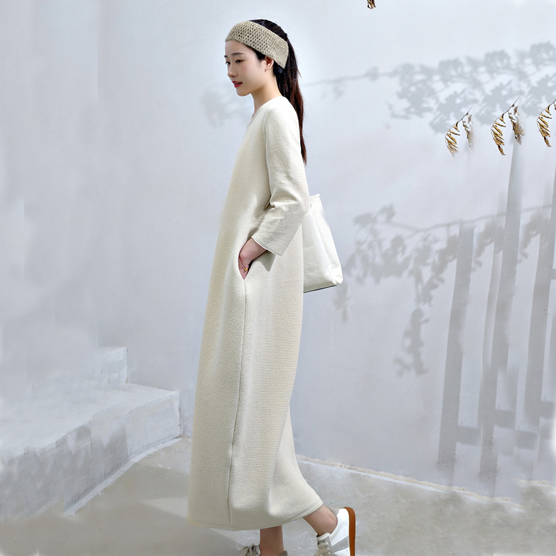 2025新款柔软蓬松直筒宽松长裙U型纯色领优雅气质显瘦长款连衣裙