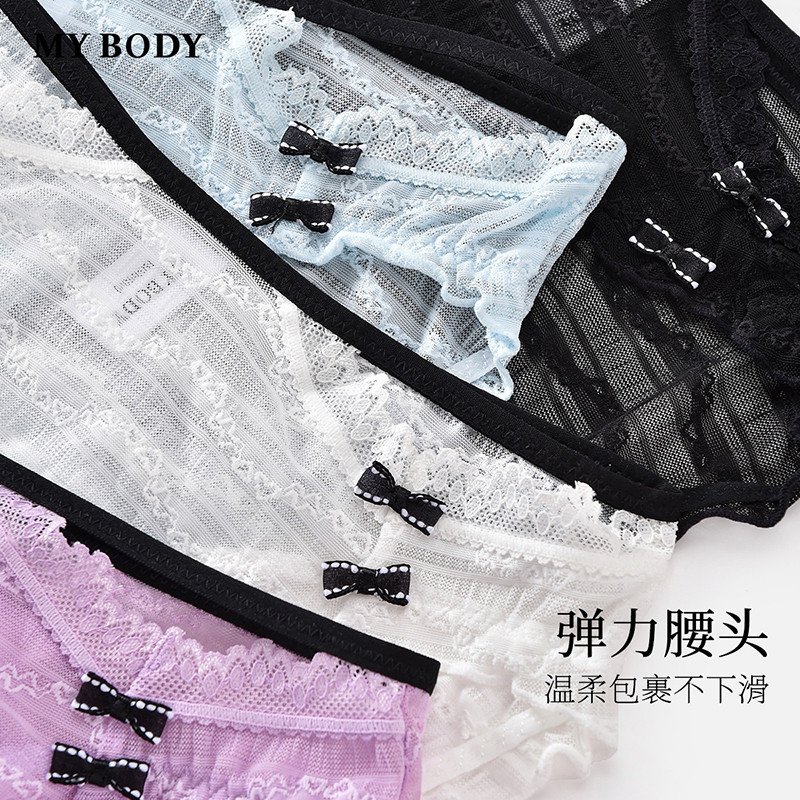 3件129|商场同款MYBODY新款内裤女波浪提花蕾丝三角裤女生兜兜裤