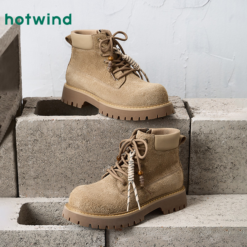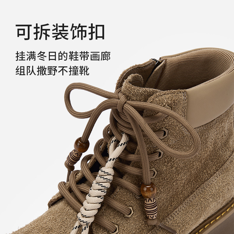 热风男鞋2025年冬季新款厚底户外工装靴百搭黑色马丁靴子男款鞋子
