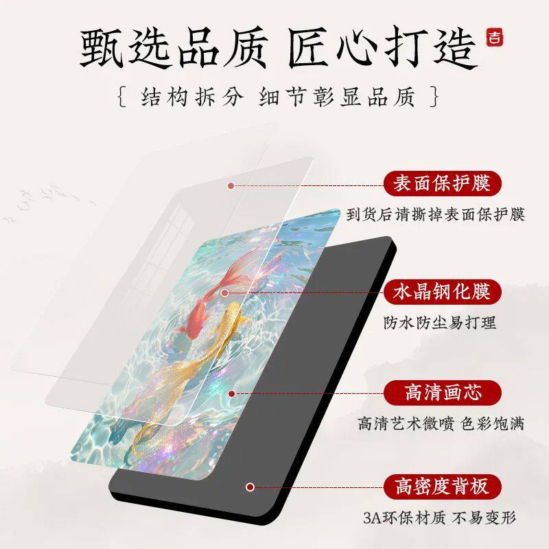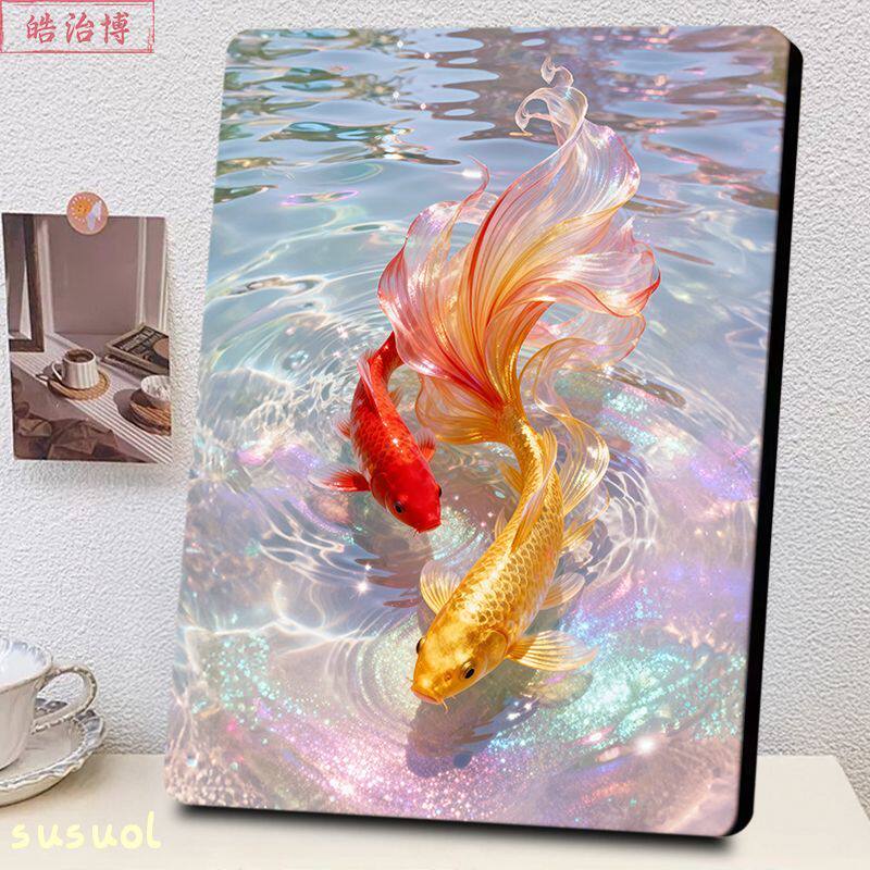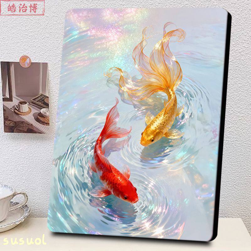 红金双鱼戏水相框高颜值精致治愈国潮招财锦鲤摆件商铺前台装饰