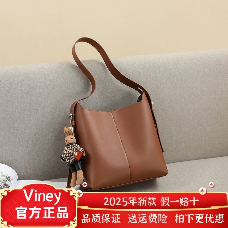 Viney牛皮包包女包水桶包轻奢单肩大容量斜挎休闲百搭生日礼物